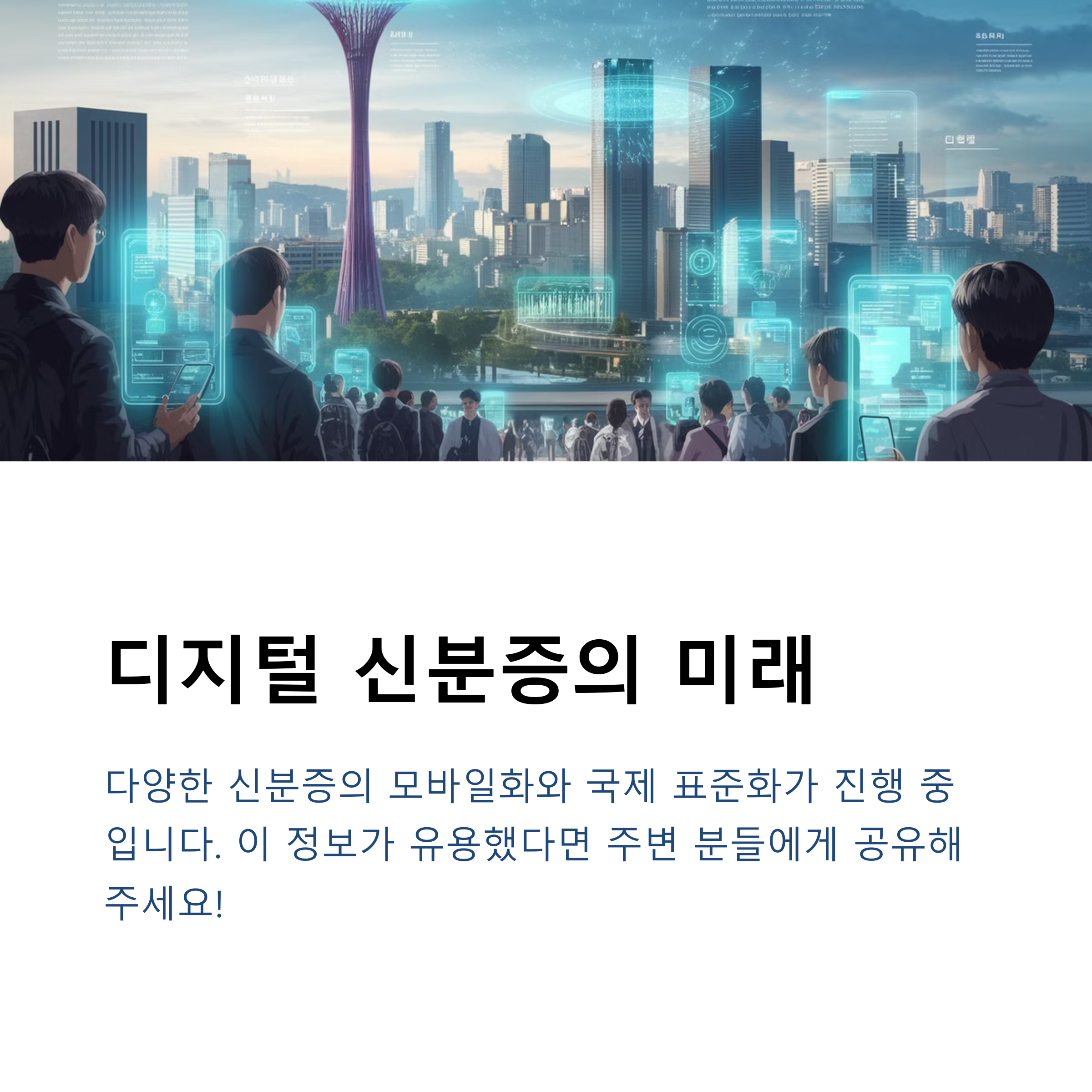또한, 모바일 신분증이 도입되면서 온라인에서도 공인 신분증으로 활용될 가능성이 커지고 있습니다. 정부 및 민간 서비스에서도 점차 적용될 예정입니다.