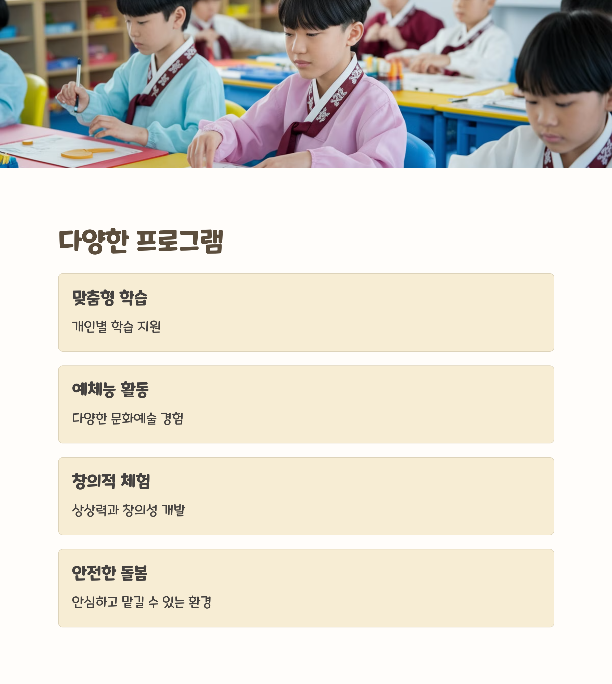✔ 방과 후 돌봄: 학교에서 안전하게 머물며 다양한 활동 진행