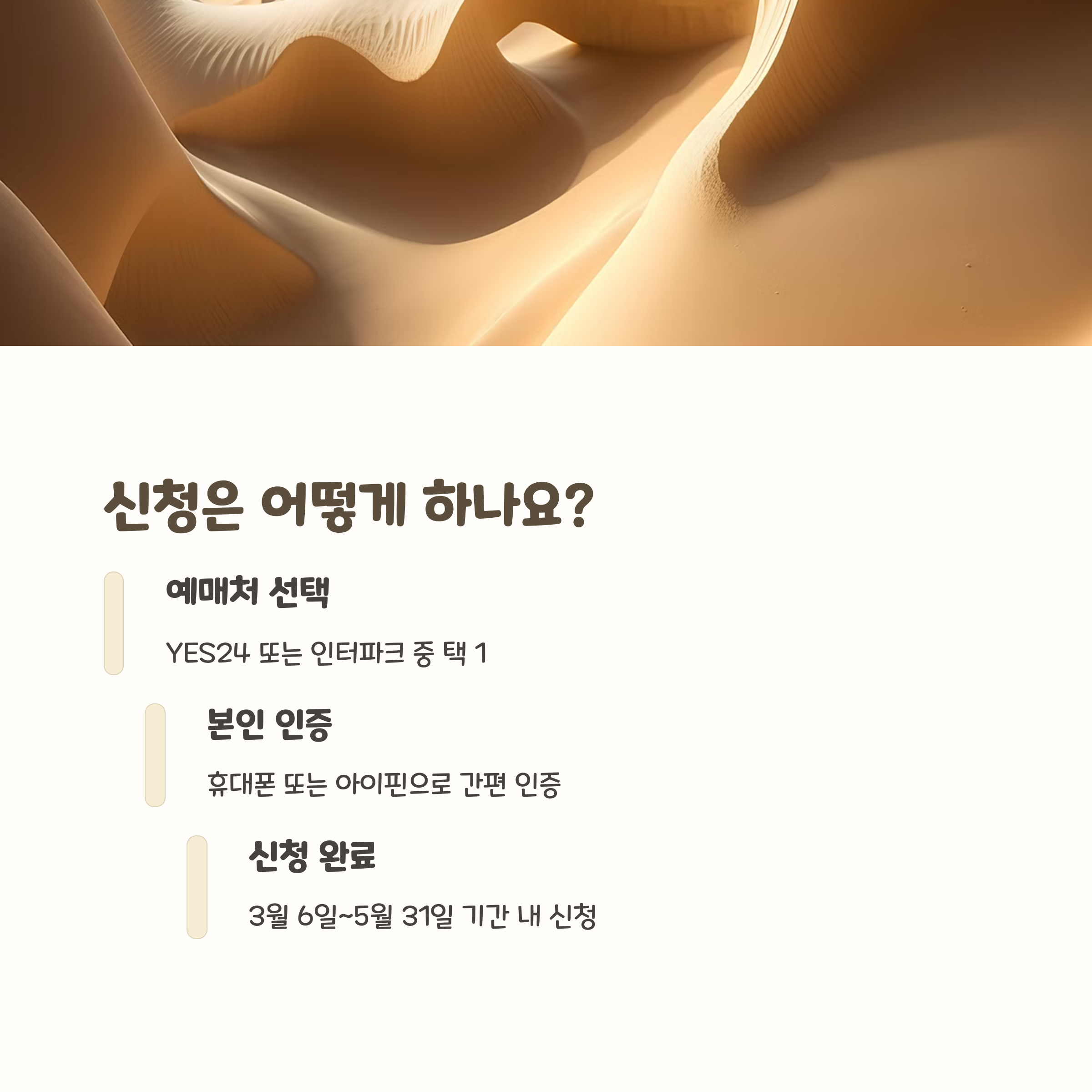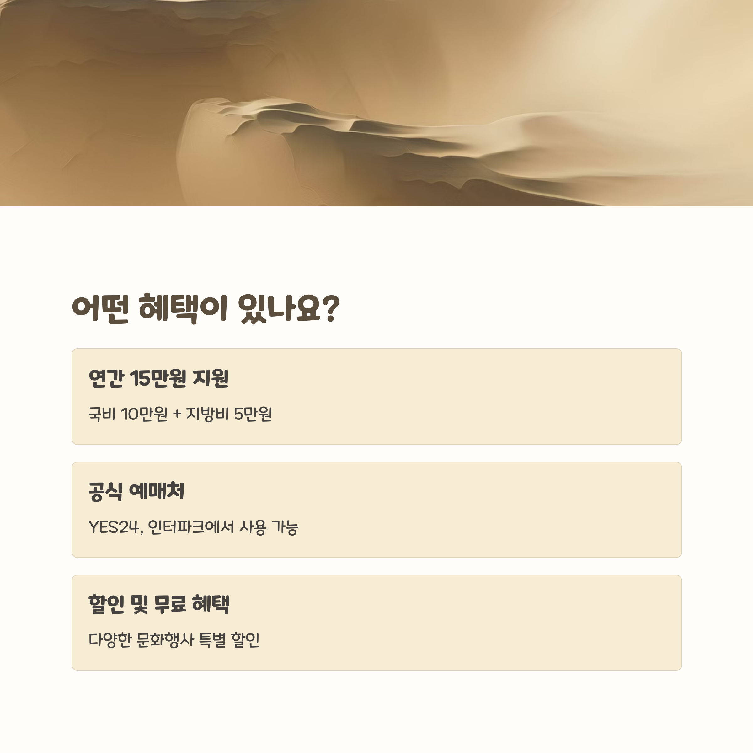 - 문화예술패스 가맹 시설에서 티켓 구매 시 할인 적용