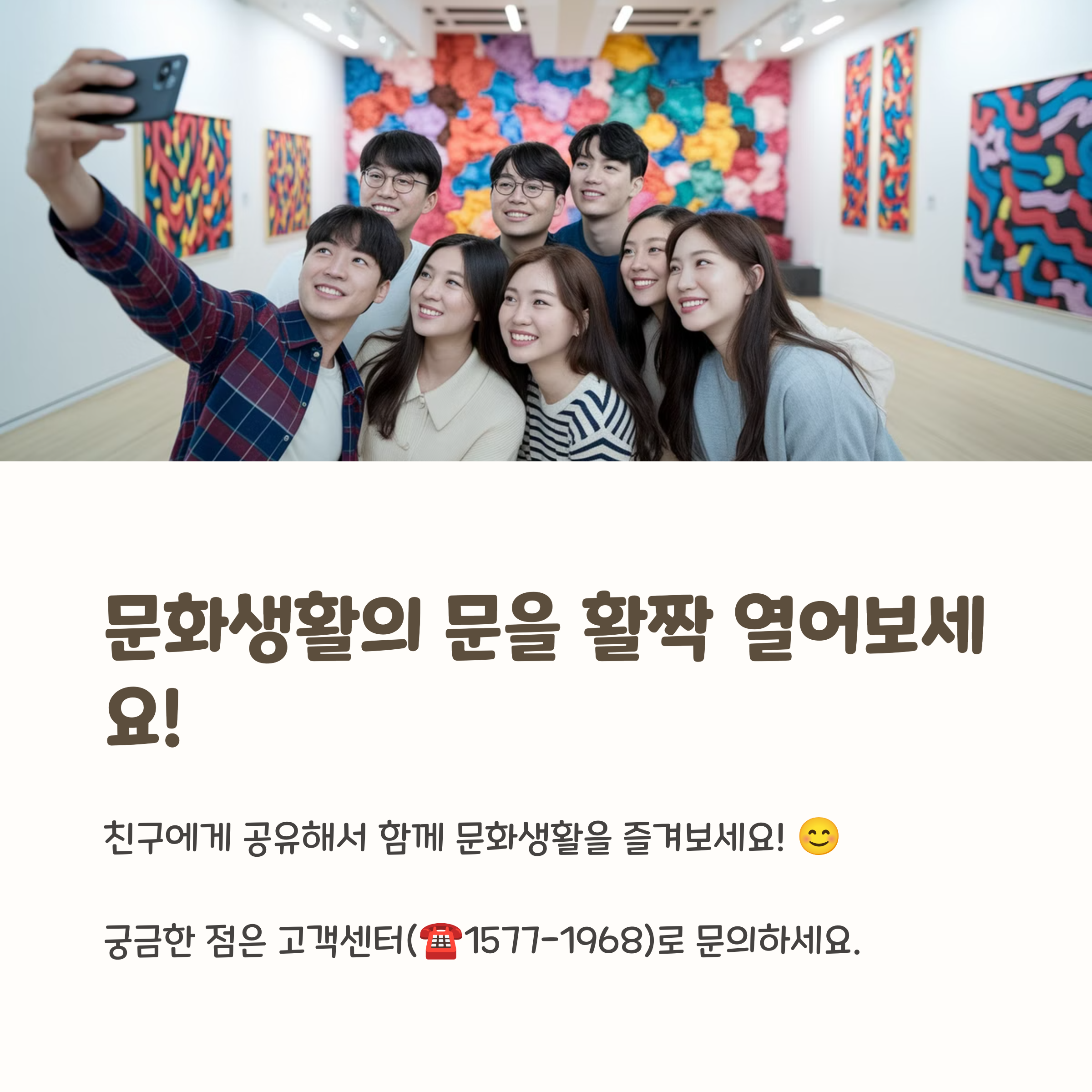 - 공연, 전시, 영화 등 문화예술 콘텐츠 이용 시 최대 50% 할인