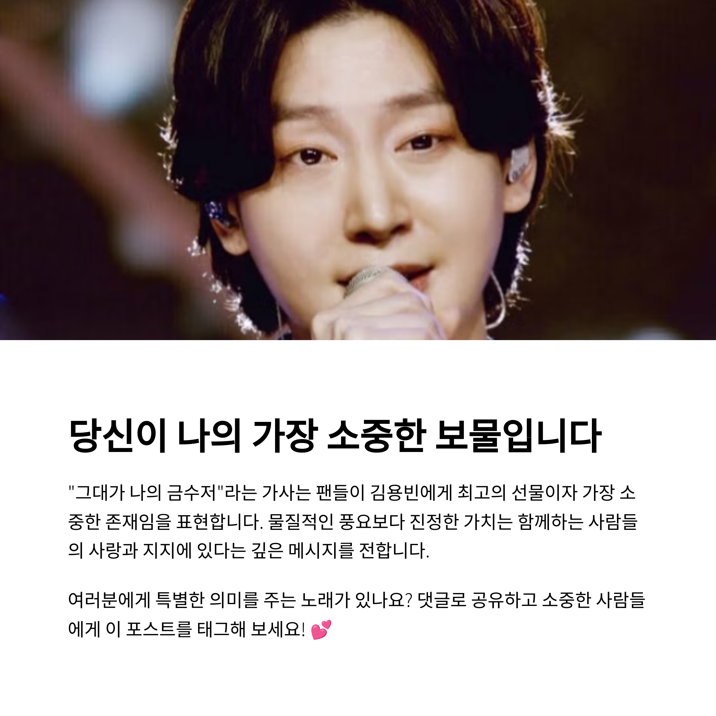 김용빈의 ‘금수저’에서 가장 감동적인 부분은 무엇이었나요? 노래를 듣고 느낀 감정이나 팬으로서의 경험을 댓글로 함께 나눠보세요. 따뜻한 공감과 이야기가 또 다른 꽃길을 만들어 줍니다.