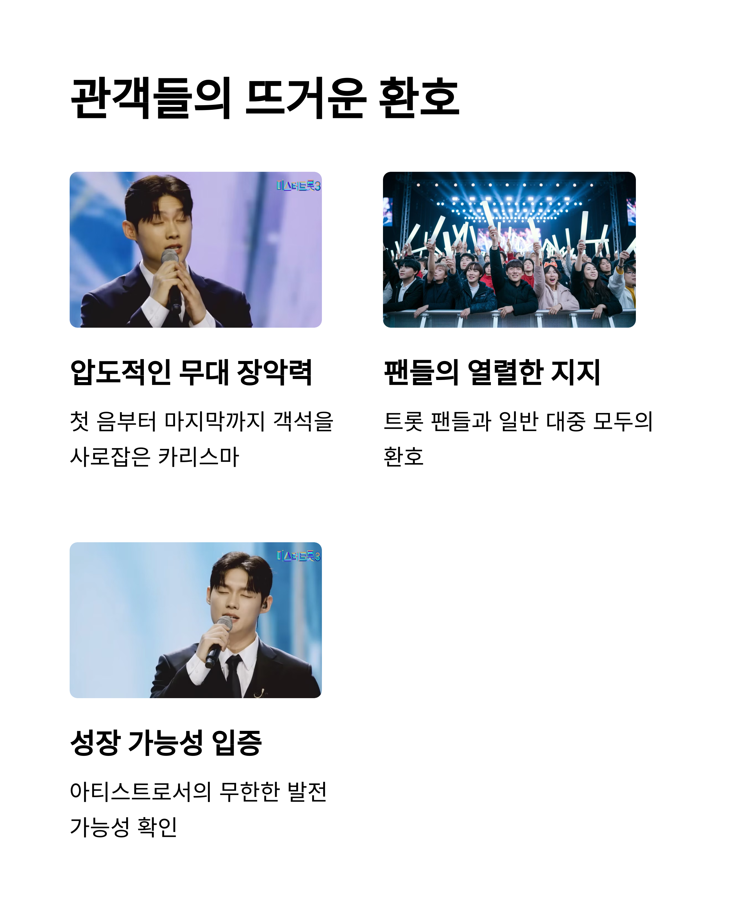 | 향후 활동에 대한 기대감 증가 | 다양한 플랫폼에서 팬들 사이 화제 | 트롯 팬들 사이에서의 입지 강화 |