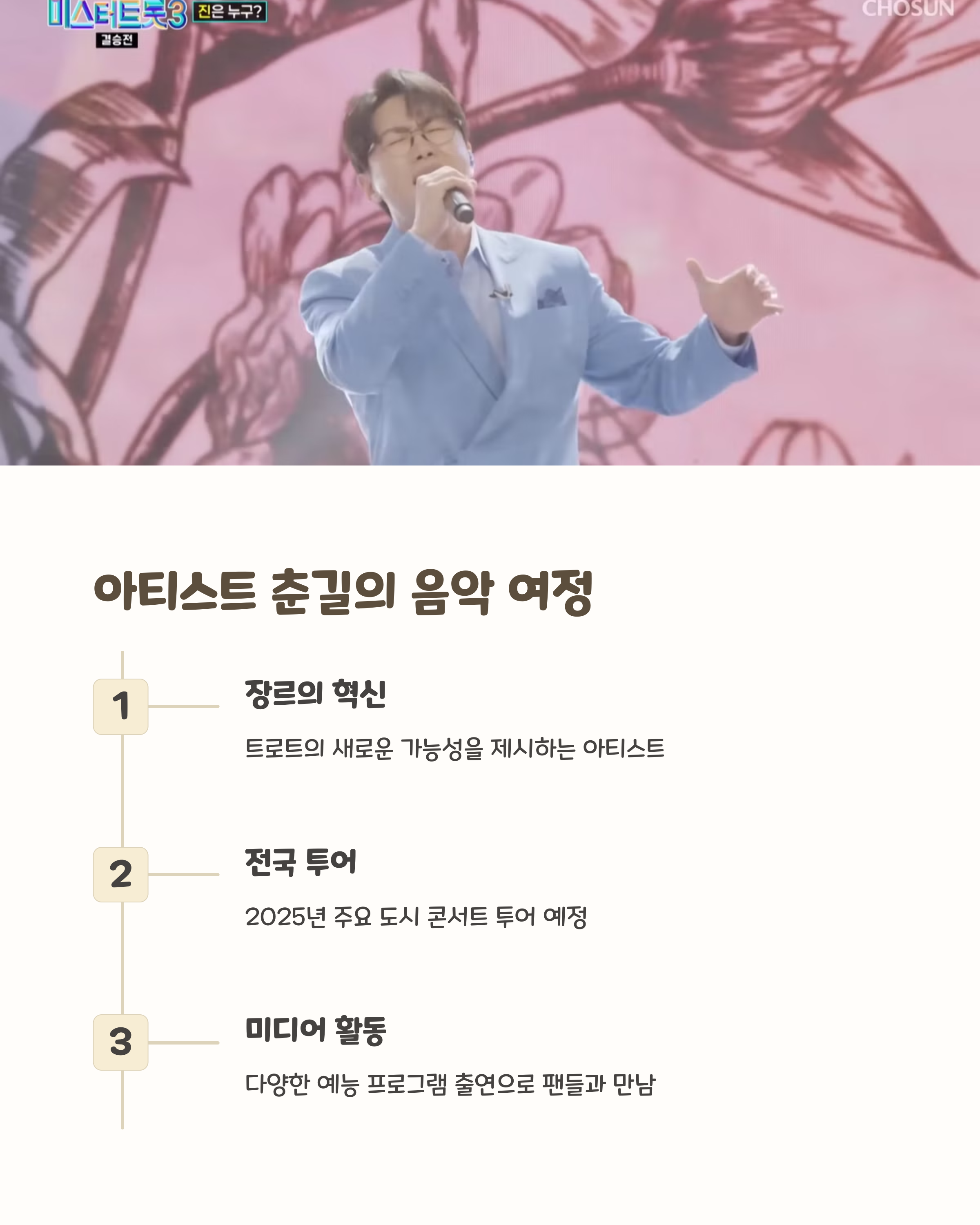 | 아티스트 | 트로트의 새로운 얼굴, 감성 보컬리스트 춘길 |