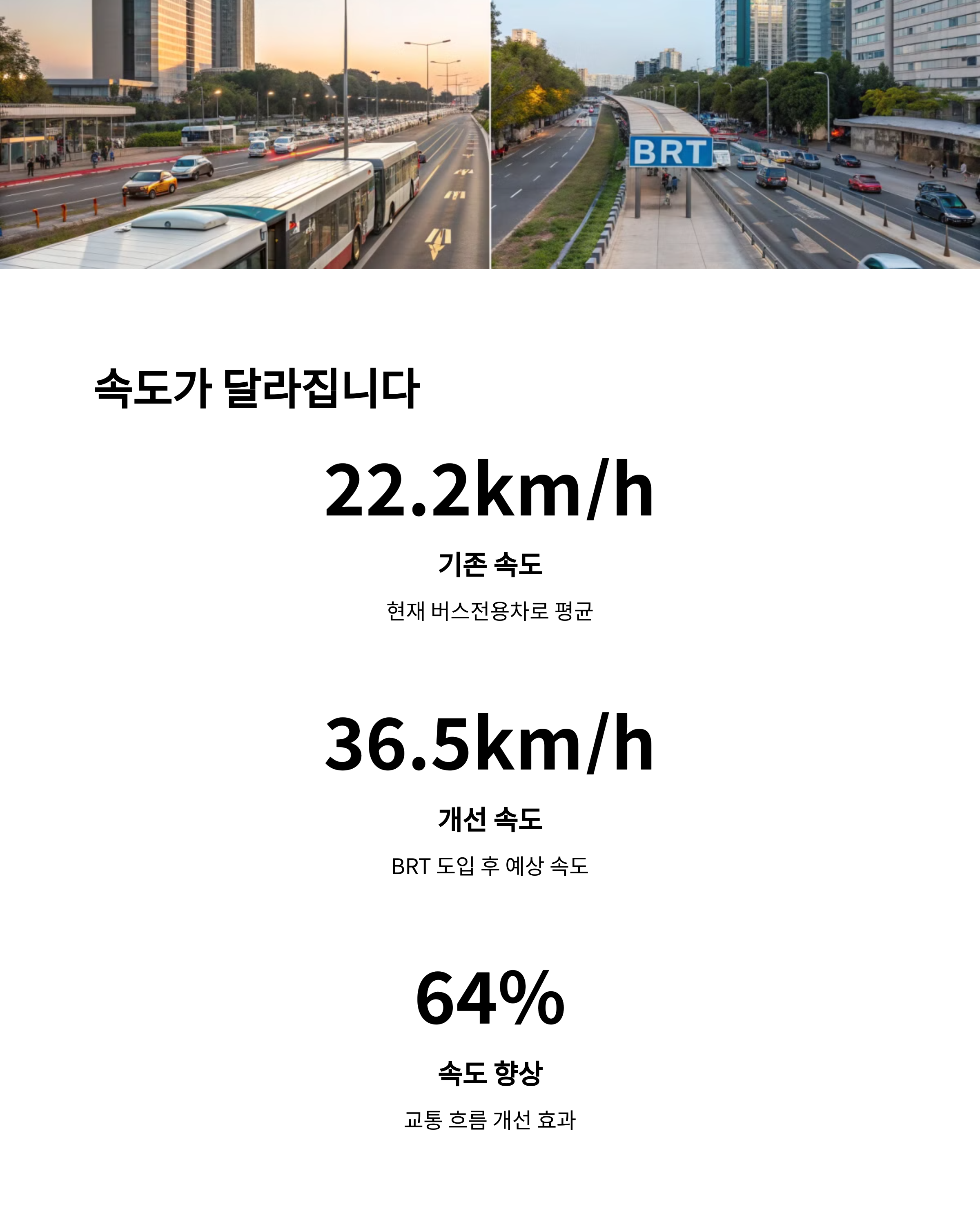 | BRT 통행 속도 | 기존 22.2km/h에서 36.5km/h로 대폭 향상 |
