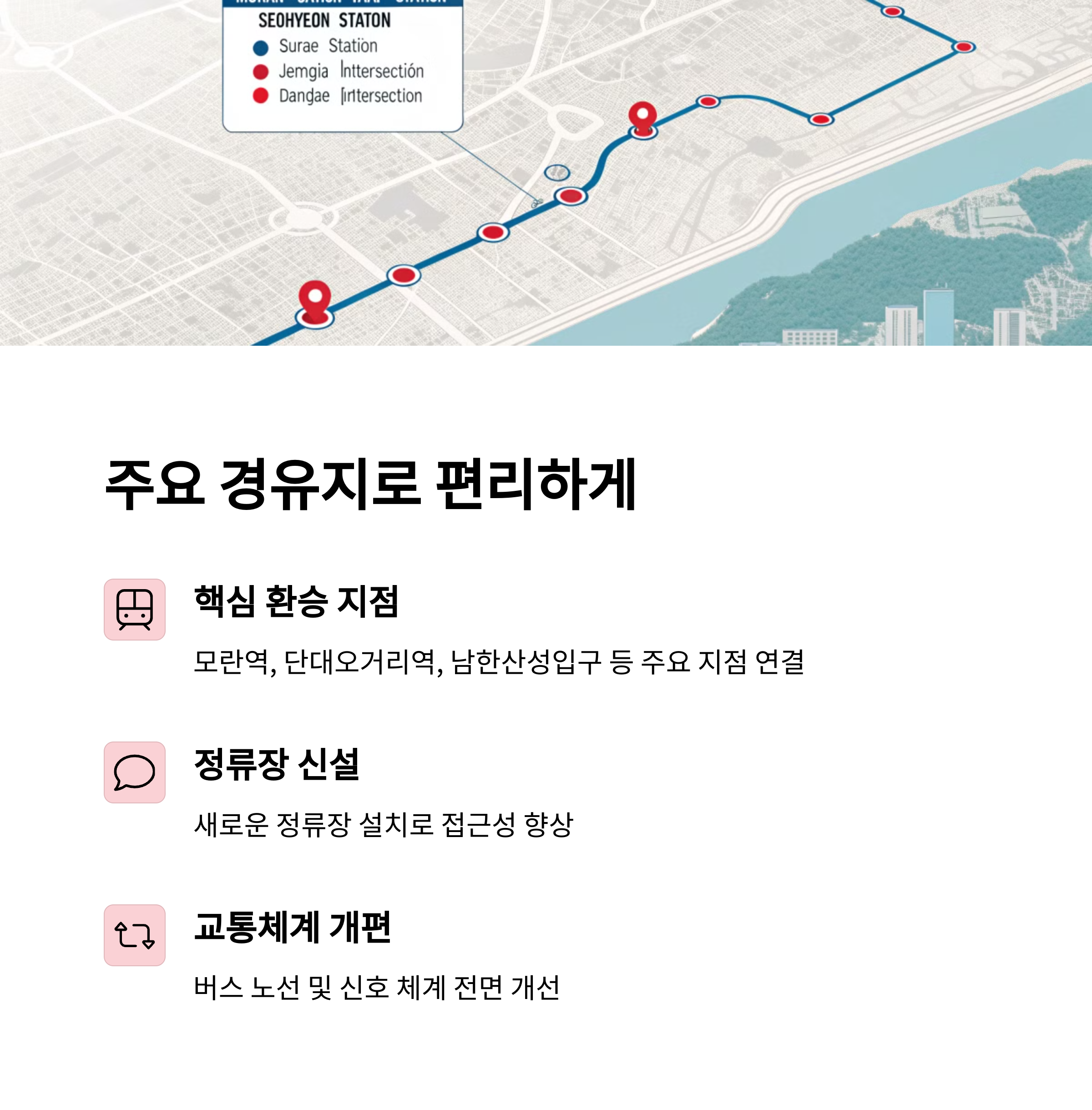 | 주요 경유지 | 모란역, 단대오거리역, 남한산성입구 등 포함 |
