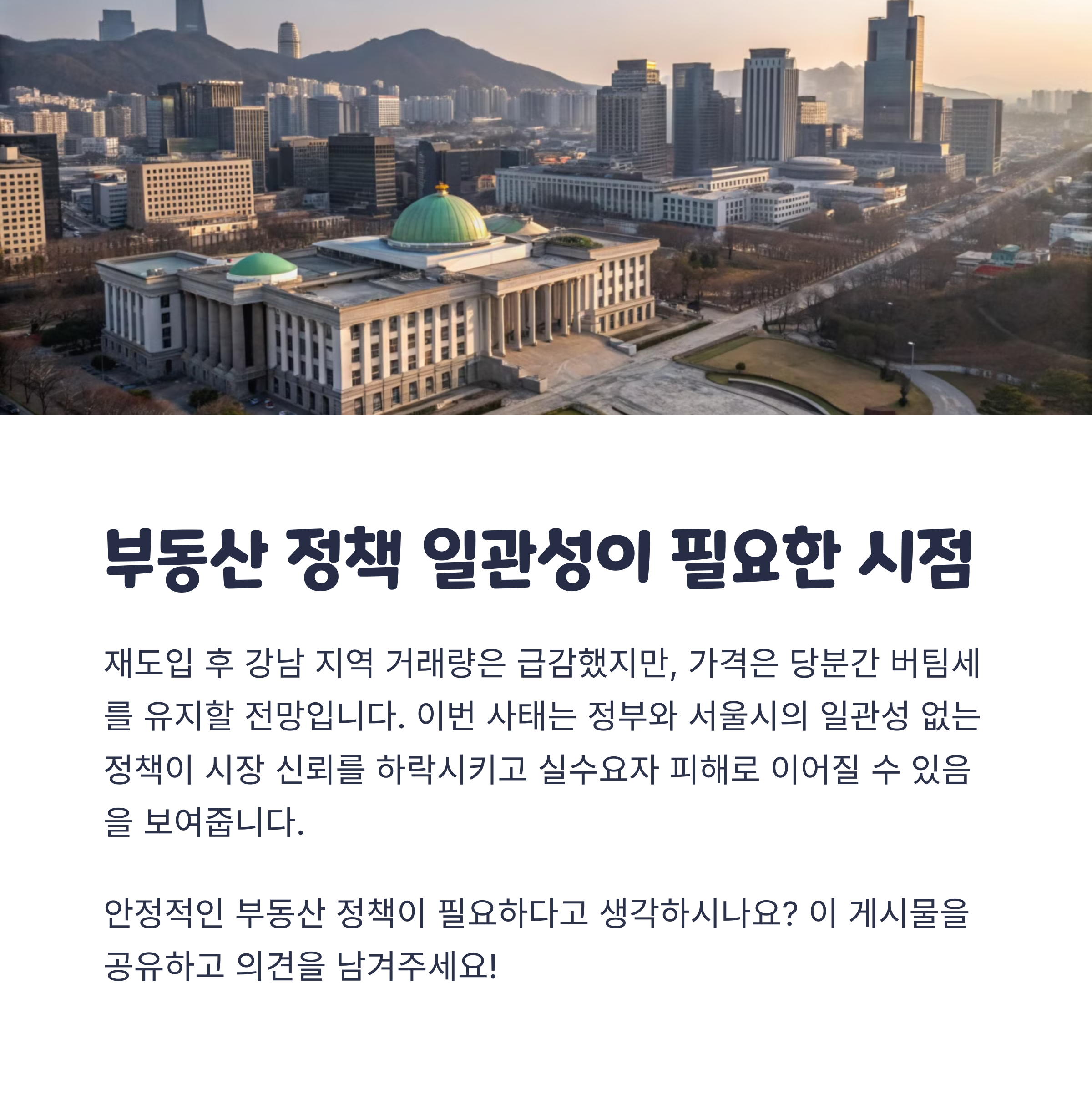 2025년 초, 서울 강남 3구(강남·서초·송파)에 적용되던 토지거래허가제가 해제되었다가 단 한 달 만에 다시 부활했습니다. 서울시는 시장의 안정을 고려한 결정이었다고 설명했지만, 짧은 기간 동안의 규제 변화는 많은 혼란을 초래했습니다.