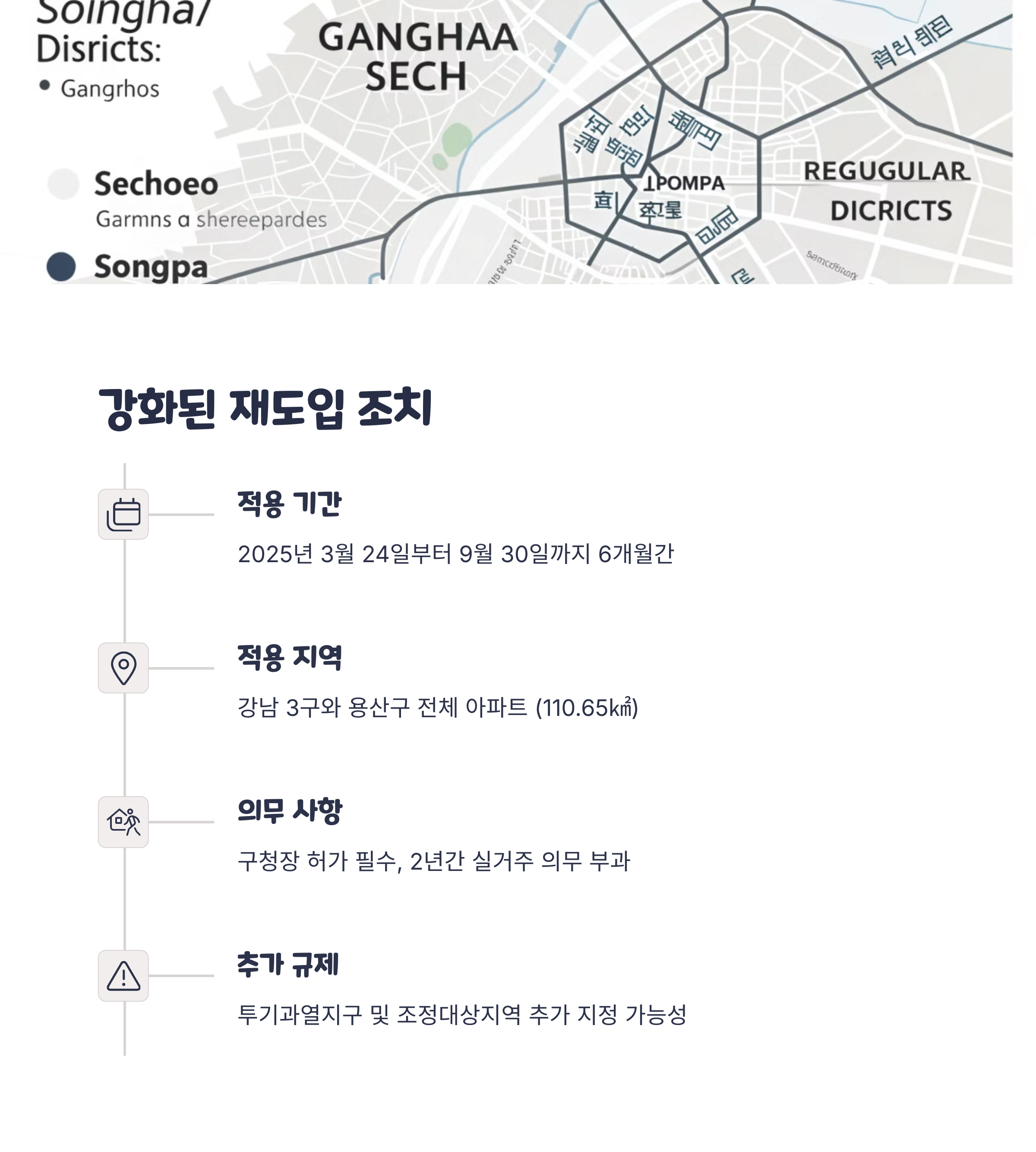 향후 강남 3구를 포함한 고가 주택 밀집 지역에서 또 다시 규제 변화가 이뤄질 수 있습니다. 그 때는 이번 사례를 교훈 삼아 혼란 없이, 실효성 있게 시장에 신호를 줄 수 있어야 합니다.