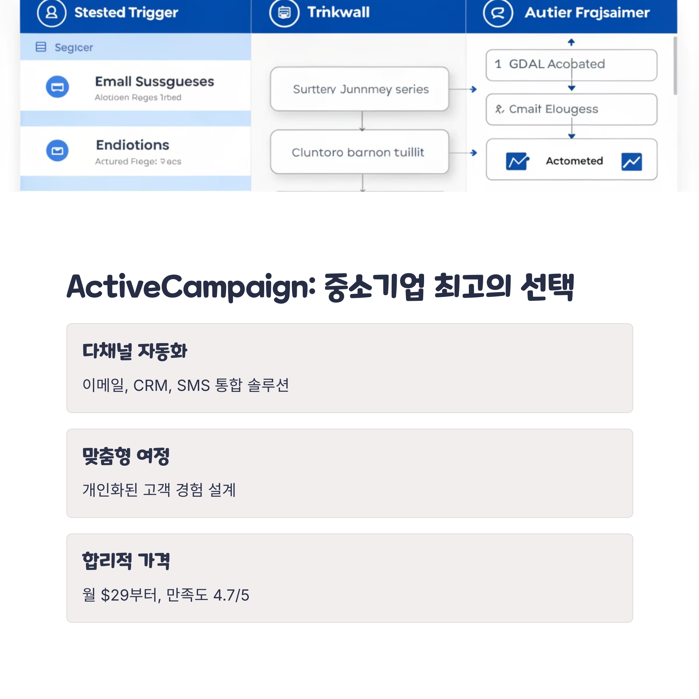 | 중소기업용, 가격 대비 효율 우수 | 무료 CRM 포함, 직관적 UI 제공 | Shopify 등과 연동 우수, 이메일 자동화 강력 |