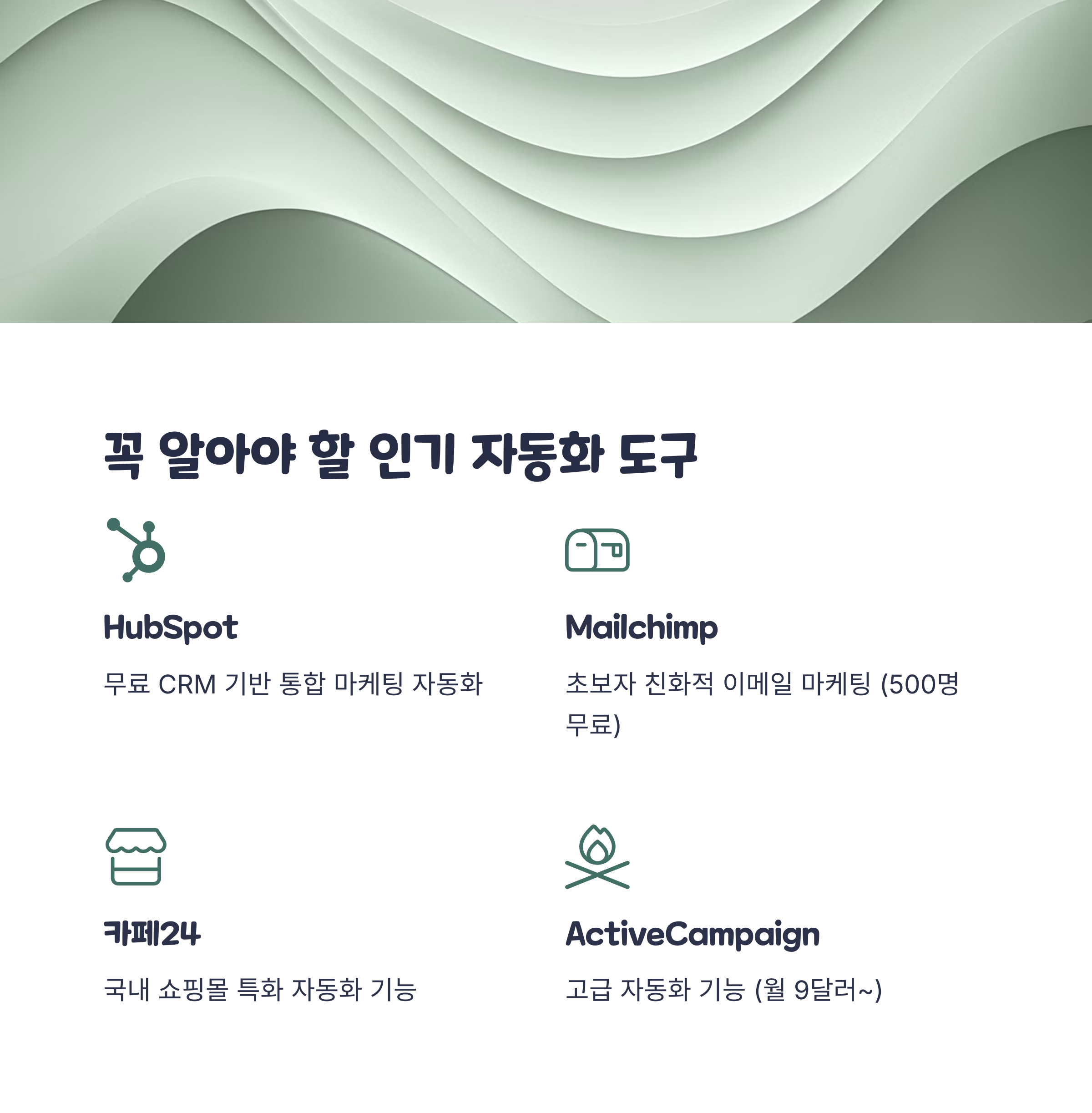 | 반복적인 업무 자동 처리 | Mailchimp, HubSpot, ActiveCampaign | 고객 행동 기반 마케팅 |