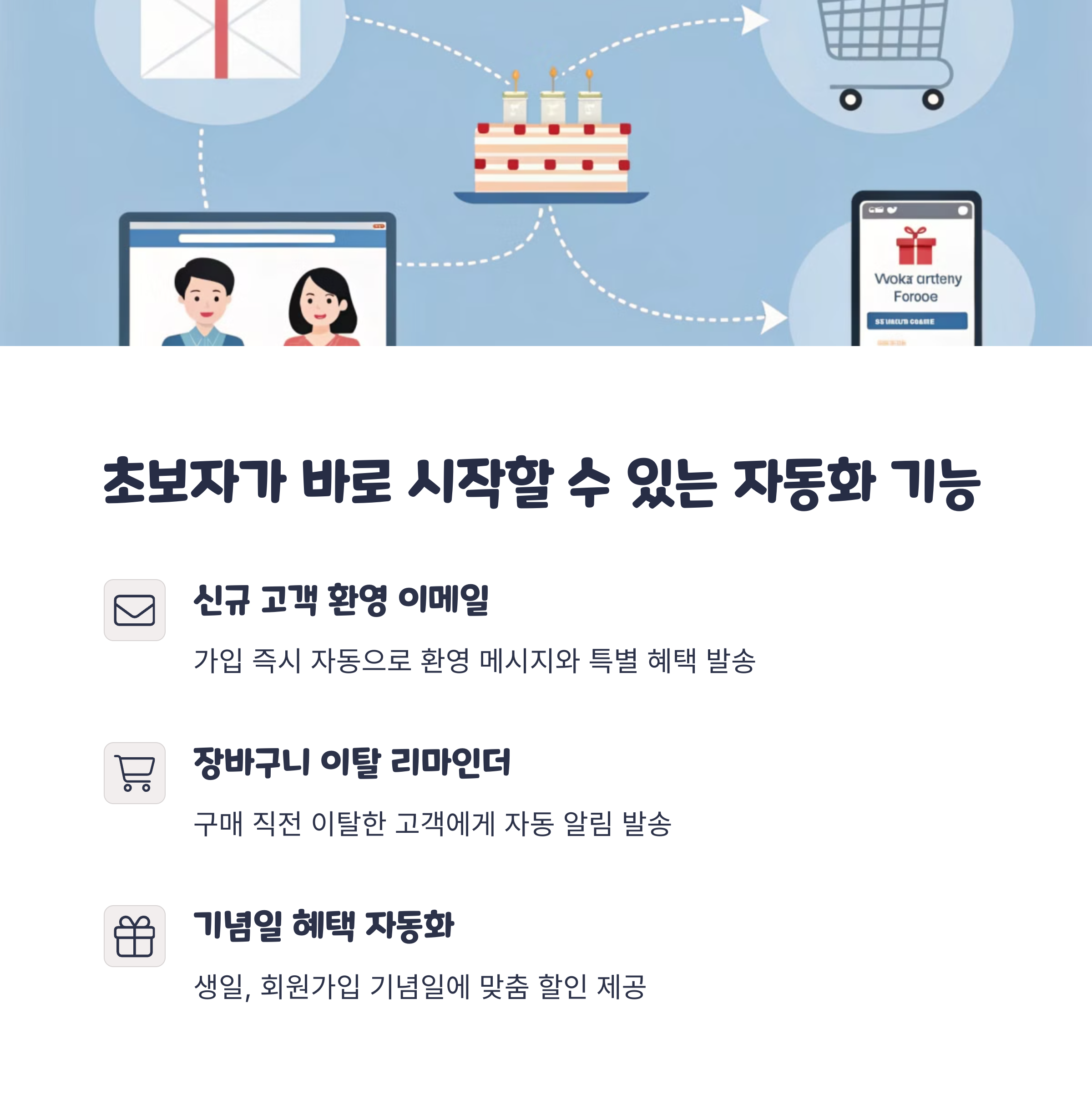 | 시간과 비용 절약 | 초보자도 쉽게 활용 가능 | 맞춤형 콘텐츠 자동 발송 |