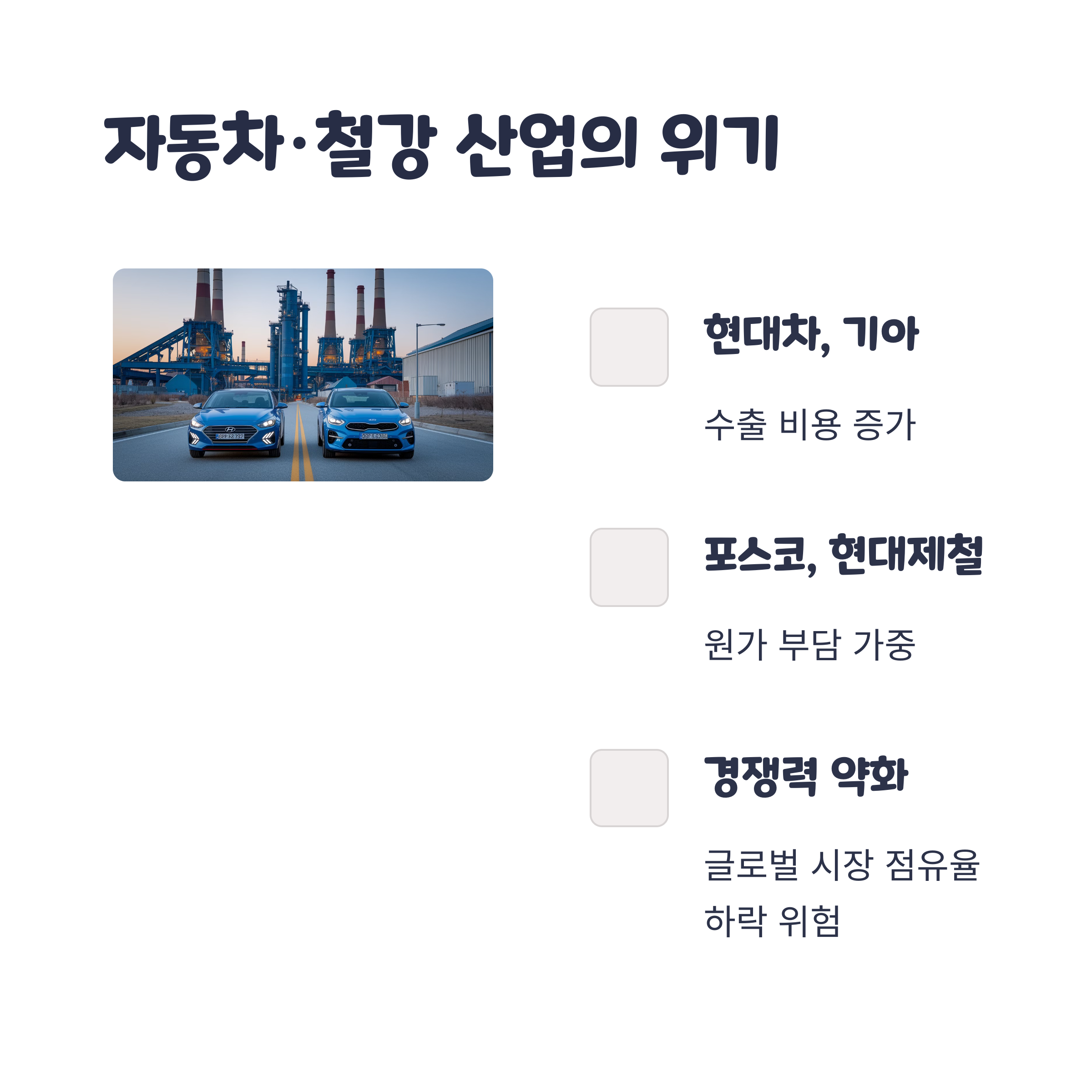 특히 반도체, 자동차, 철강은 미국 시장 의존도가 높아 가격 경쟁력 약화와 수익성 저하가 우려됩니다.