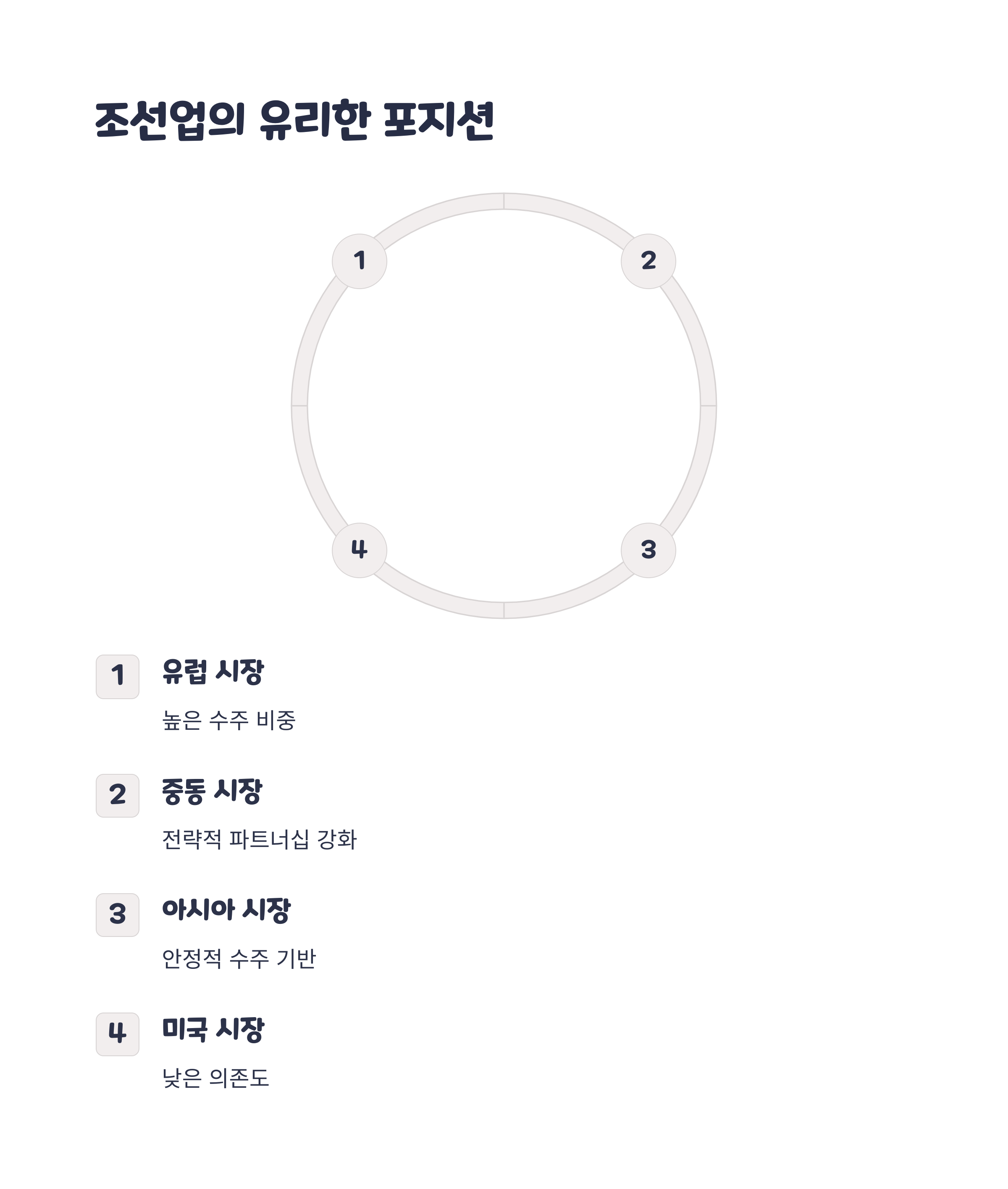 | 조선 | 현대중공업, 삼성중공업 | 수주 지역이 유럽·중동 중심 |