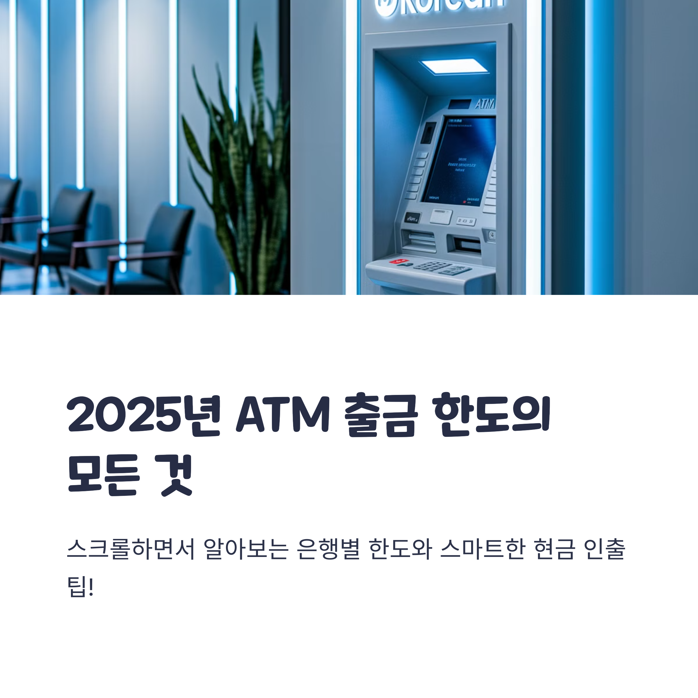 ATM 출금 한도는 정해진 기준이 있지만, 개인의 계좌 상태나 필요에 따라 유연하게 조정할 수 있습니다. 스마트폰 인증, 생체 인증 등 편리하고 안전한 기능을 잘 활용하면 출금도 더 스마트해집니다. 불필요한 출금 제한으로 불편함을 겪기 전에 본인의 계좌 상태를 주기적으로 점검하는 것이 좋습니다.