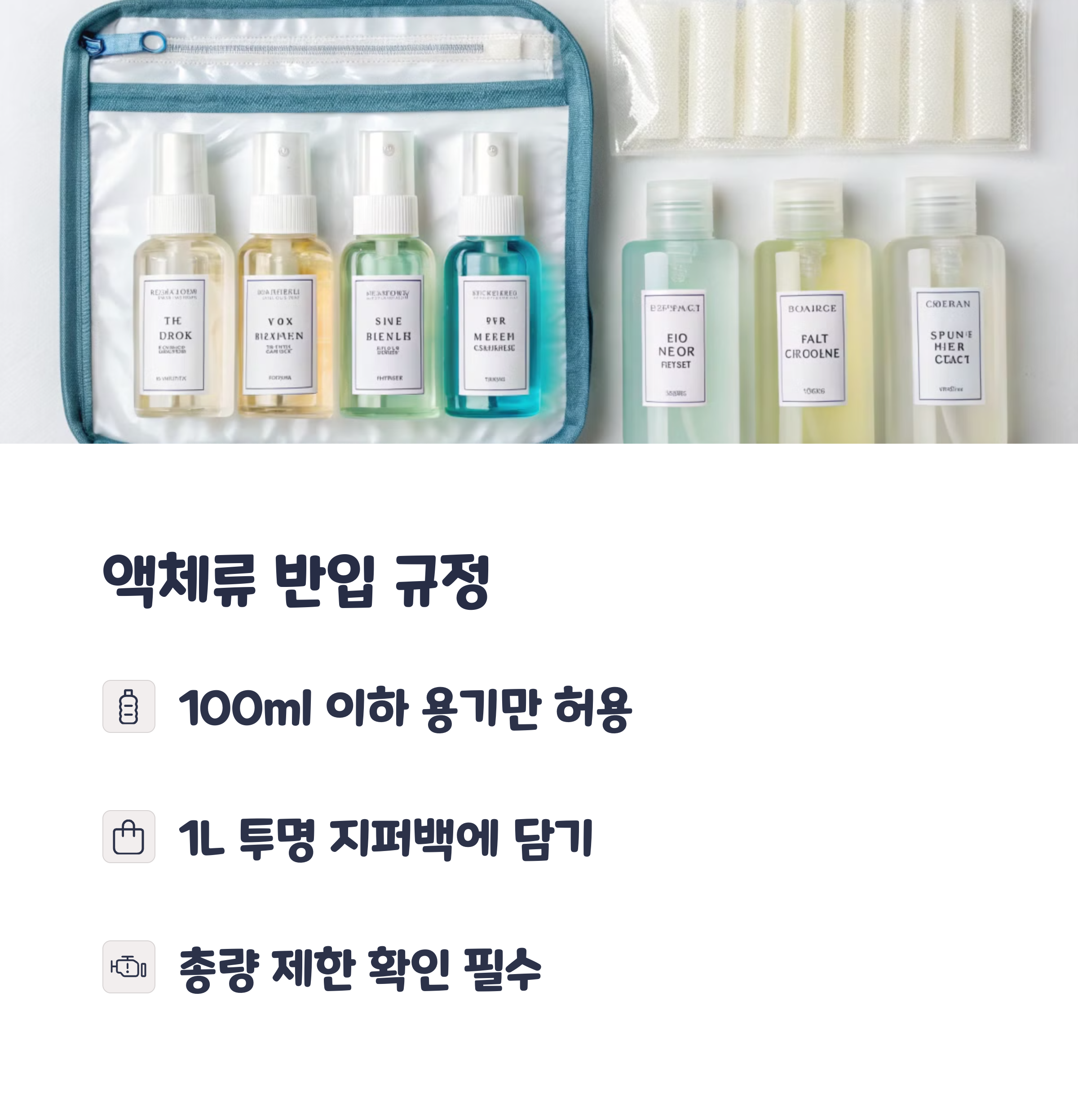 액체류 반입 조건: 100ml 이하만 가능