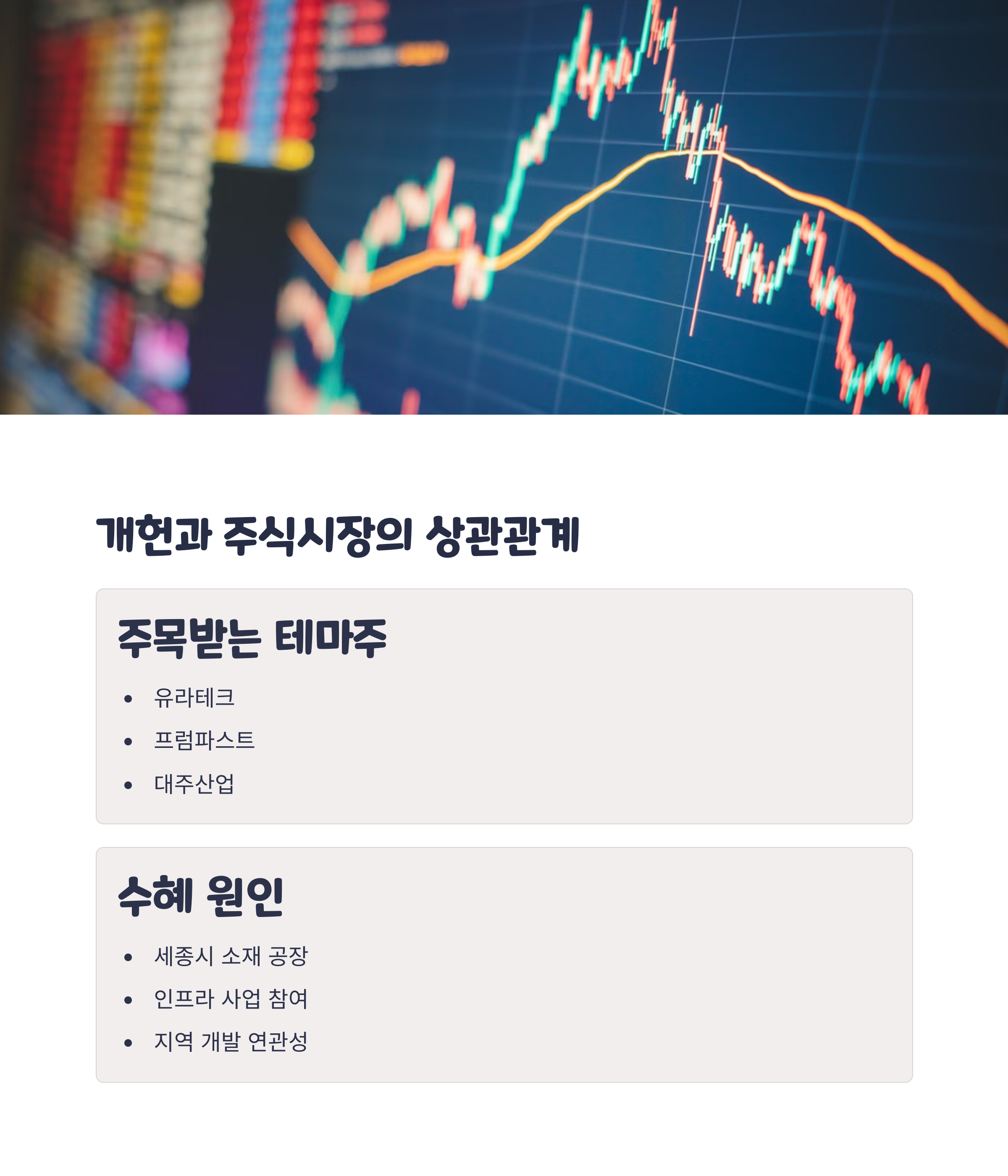 개헌 이슈가 정치권에서 본격화되면, 주식시장도 반응하기 시작합니다. 대표적인 것이 개헌 테마주입니다. 특히 세종시 인근에 위치한 기업이나 지역 인프라에 연관된 기업들이 시장에서 주목을 받습니다.