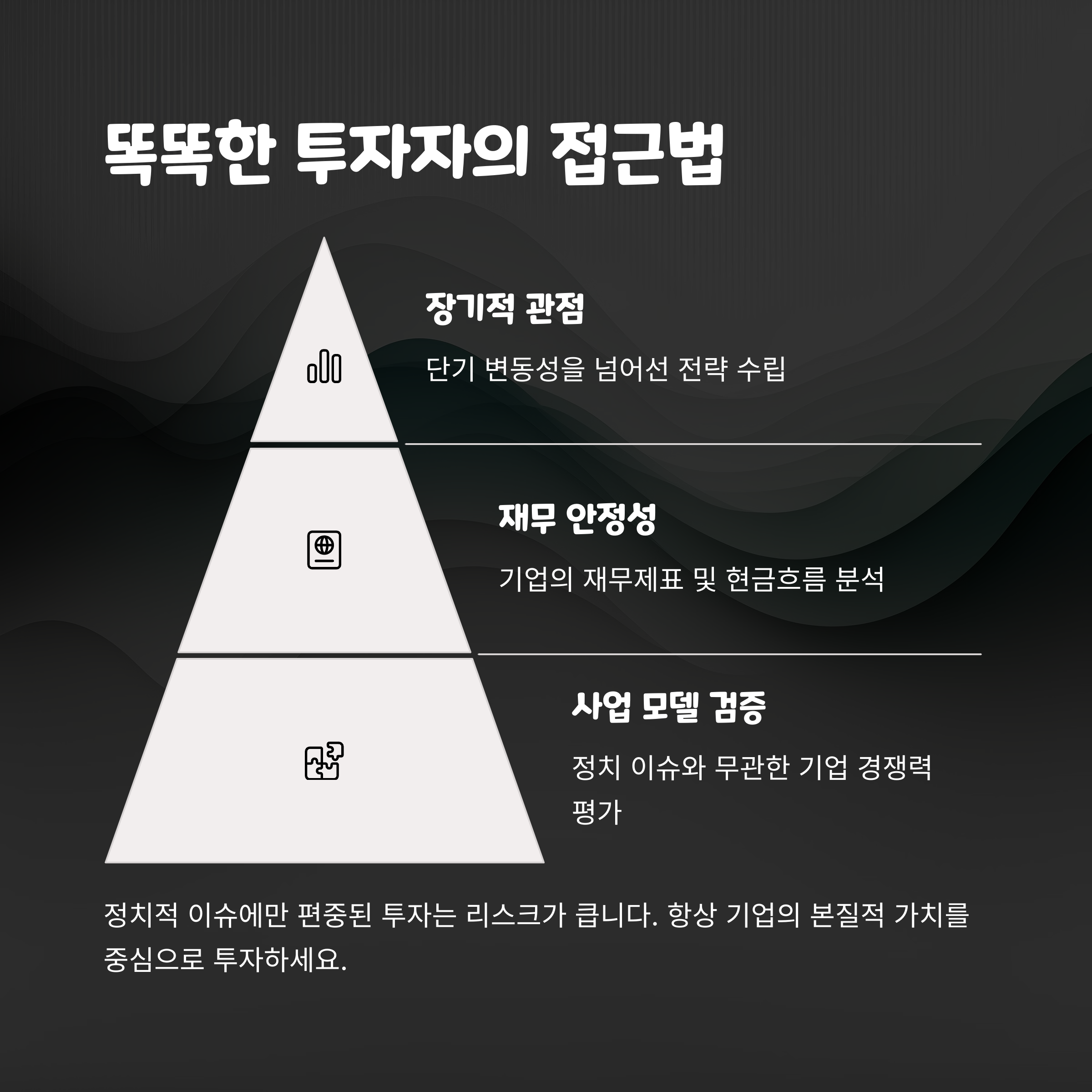 투자 전에는 해당 기업의 기초 체력, 즉 재무 구조, 실적 흐름, 사업 모델 등을 반드시 체크해야 합니다. 정치 이벤트 외에 기업 본연의 성장 가능성도 함께 고려해야 하죠.