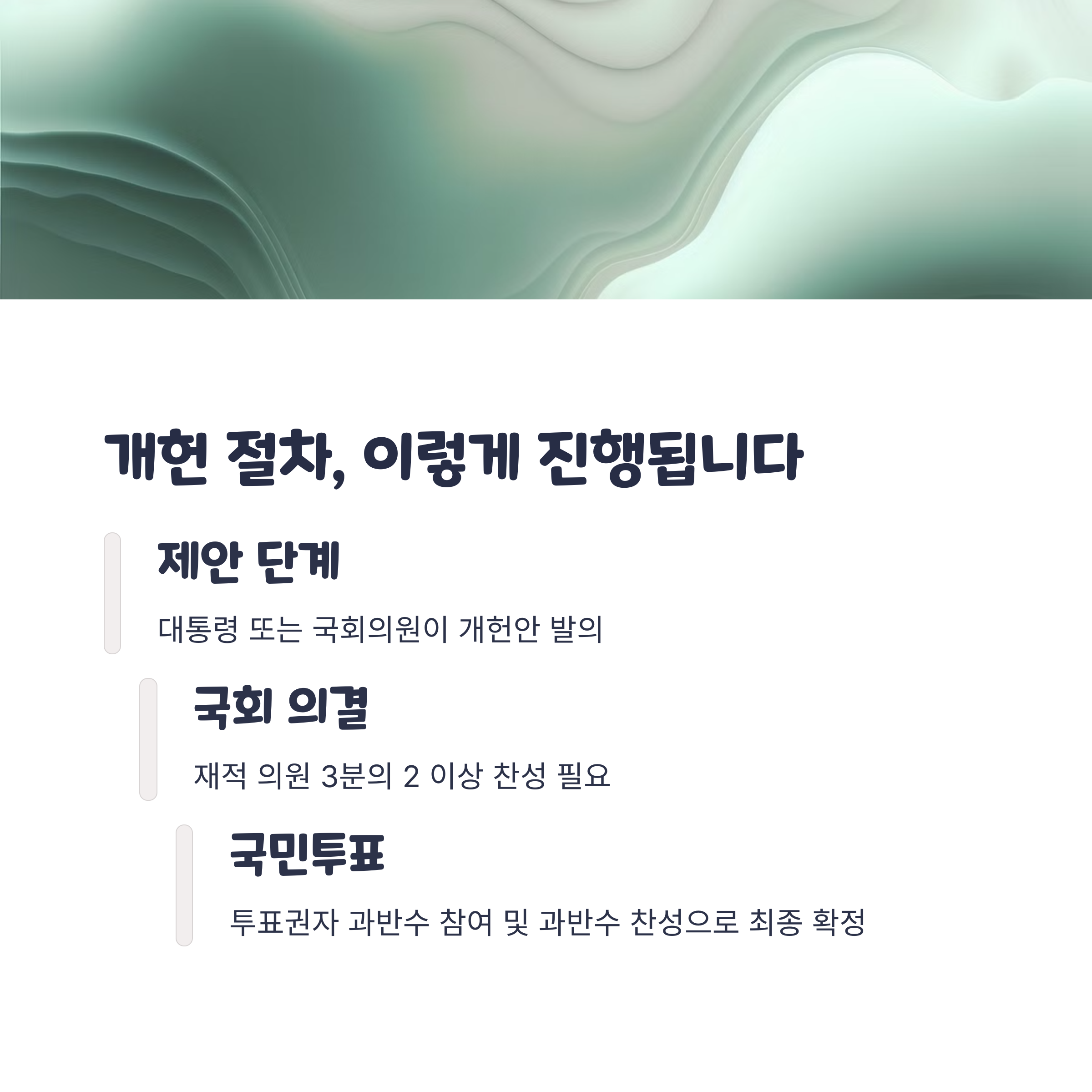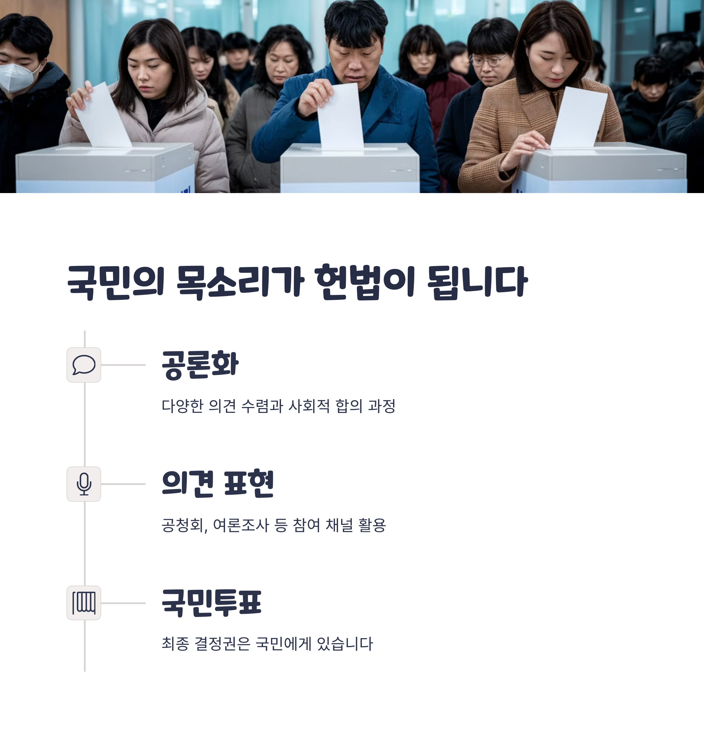 대한민국에서는 대통령이나 국회의원이 개헌을 제안할 수 있으며, 국회 재적 의원 3분의 2 이상 찬성과 국민투표를 통해 확정됩니다. 이 과정은 국민적 공감대와 정치적 합의가 필수로 수반되는 복잡한 절차입니다.