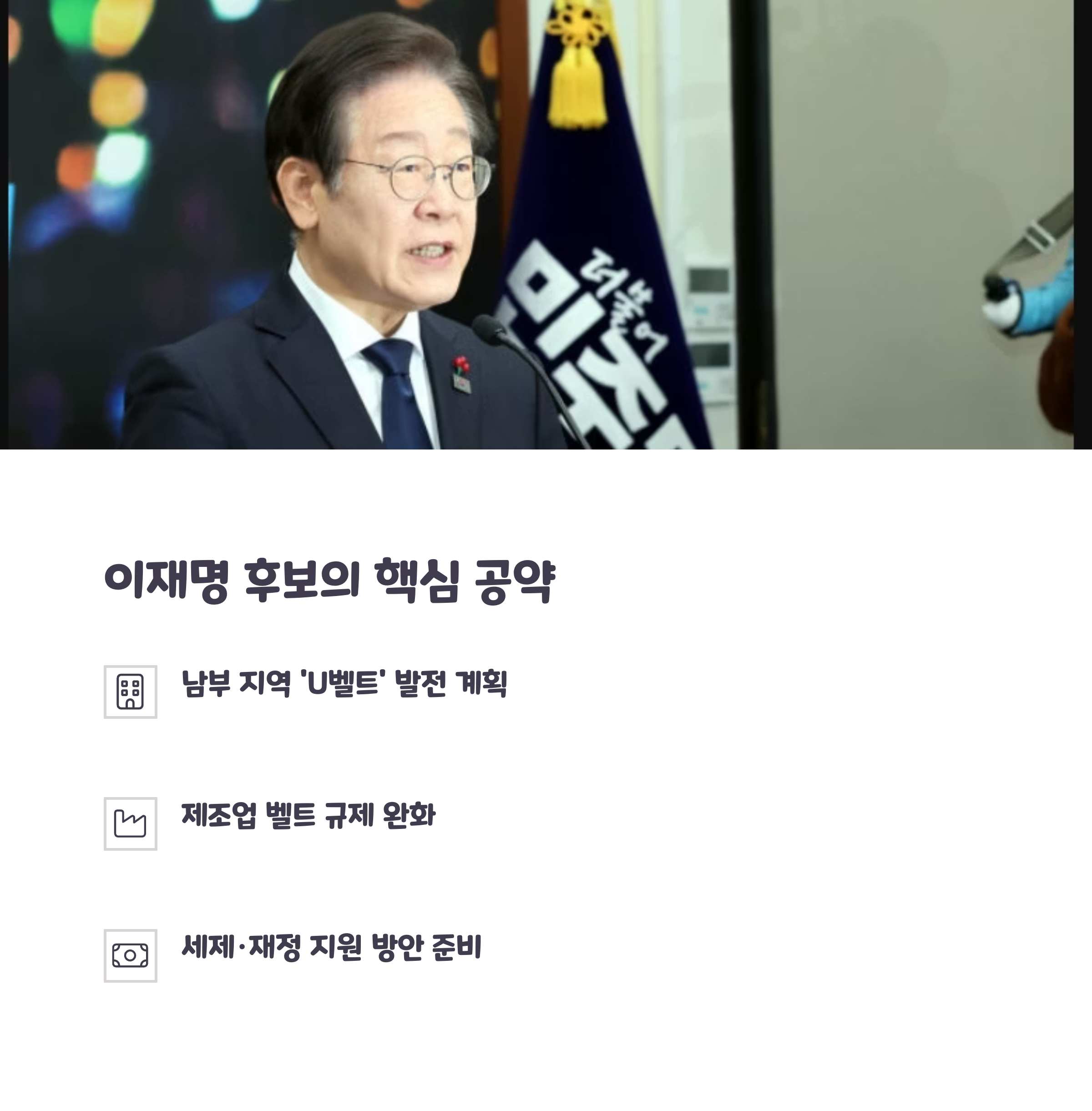 이재명 후보는 이번 경선에서 AI와 첨단산업 육성을 핵심 전략으로 내세웠습니다. 특히, 100조 원 규모의 AI 투자 공약을 발표하며, 경제성장과 산업전환을 동시에 노린다는 평가를 받고 있습니다.