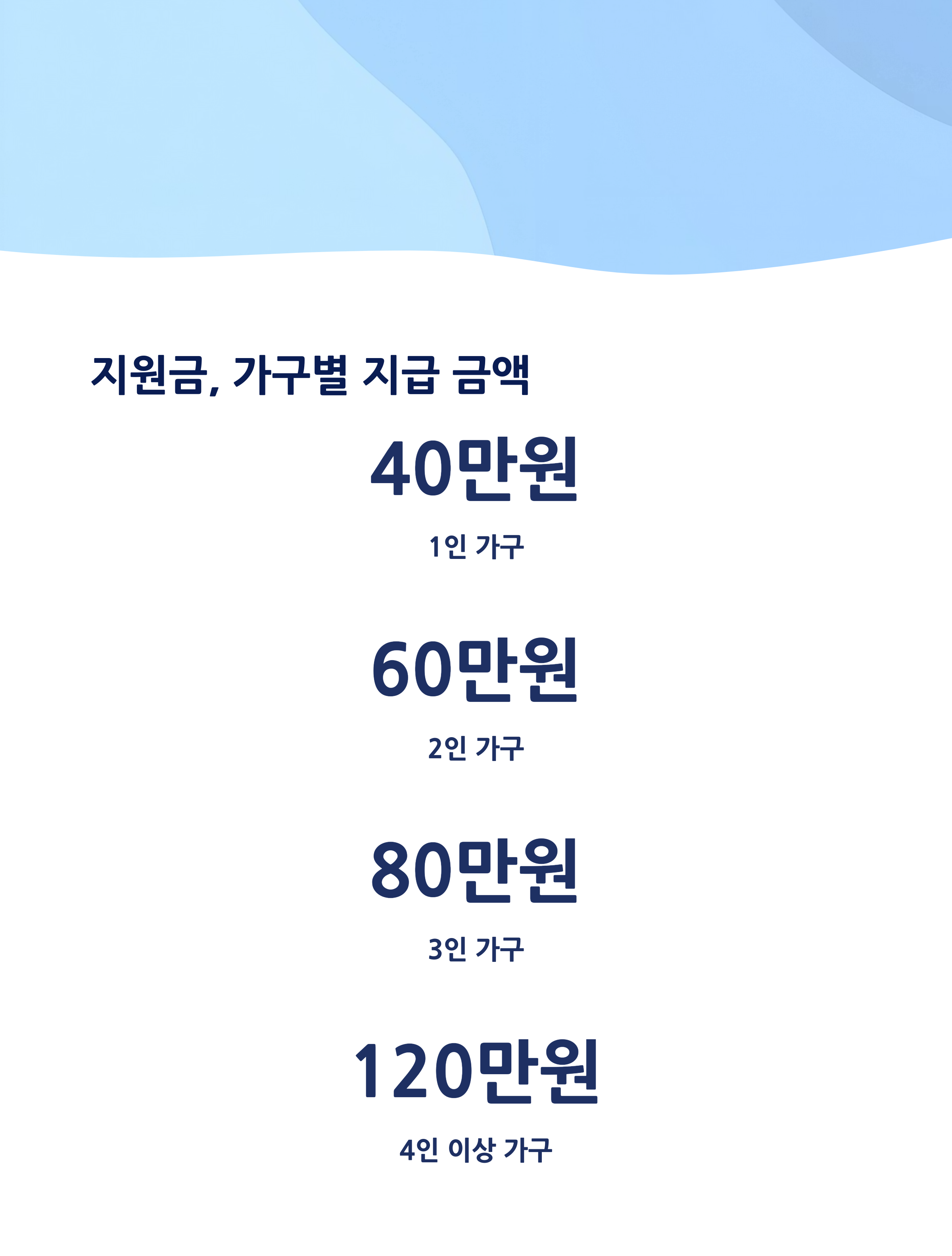 | 가구원 수 | 지급 금액 | 중위소득 기준 |