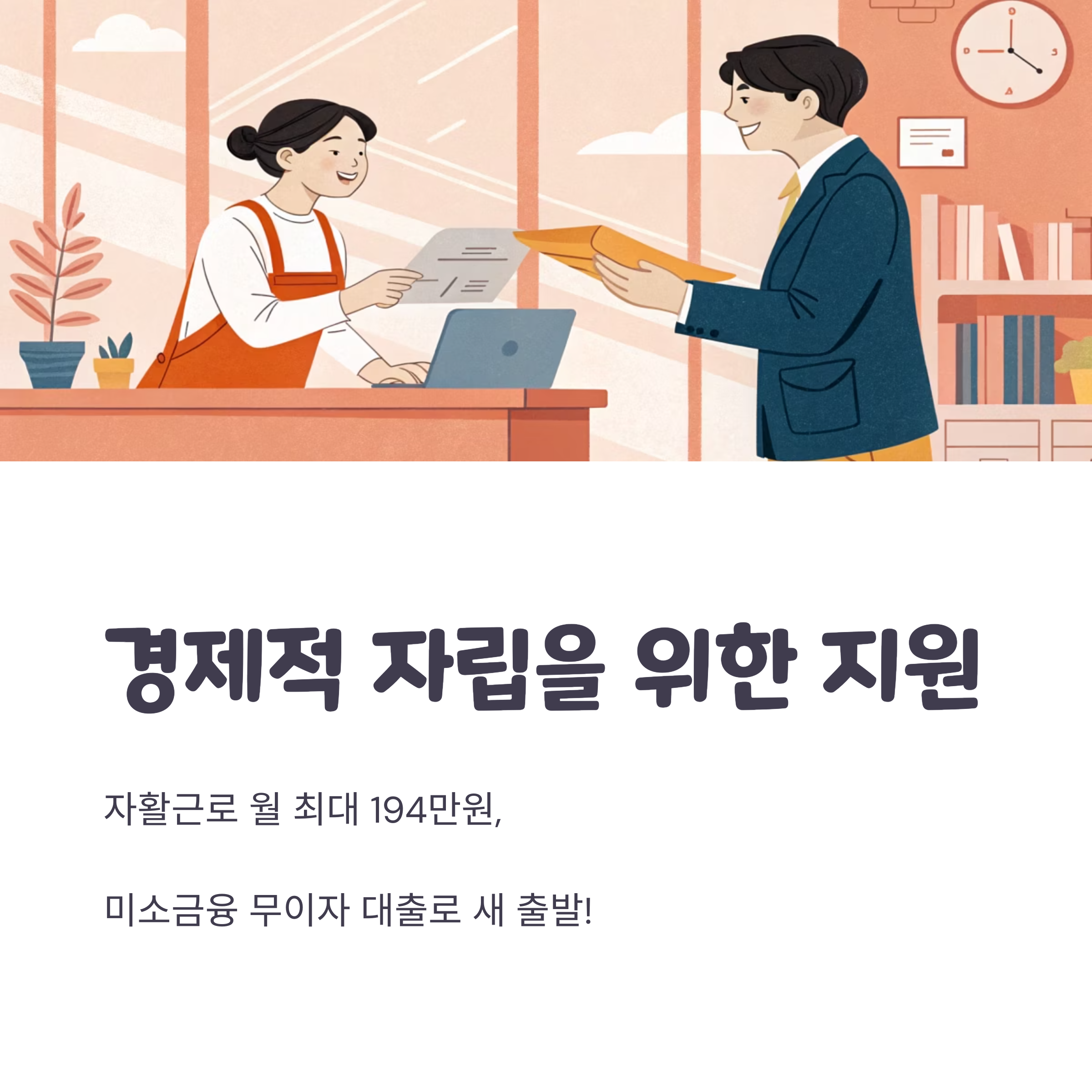 또한 미소금융을 통해 무담보·무보증 소액대출을 받을 수 있어 창업, 생계자금, 학자금 등 필요한 용도에 따라 활용 가능합니다.