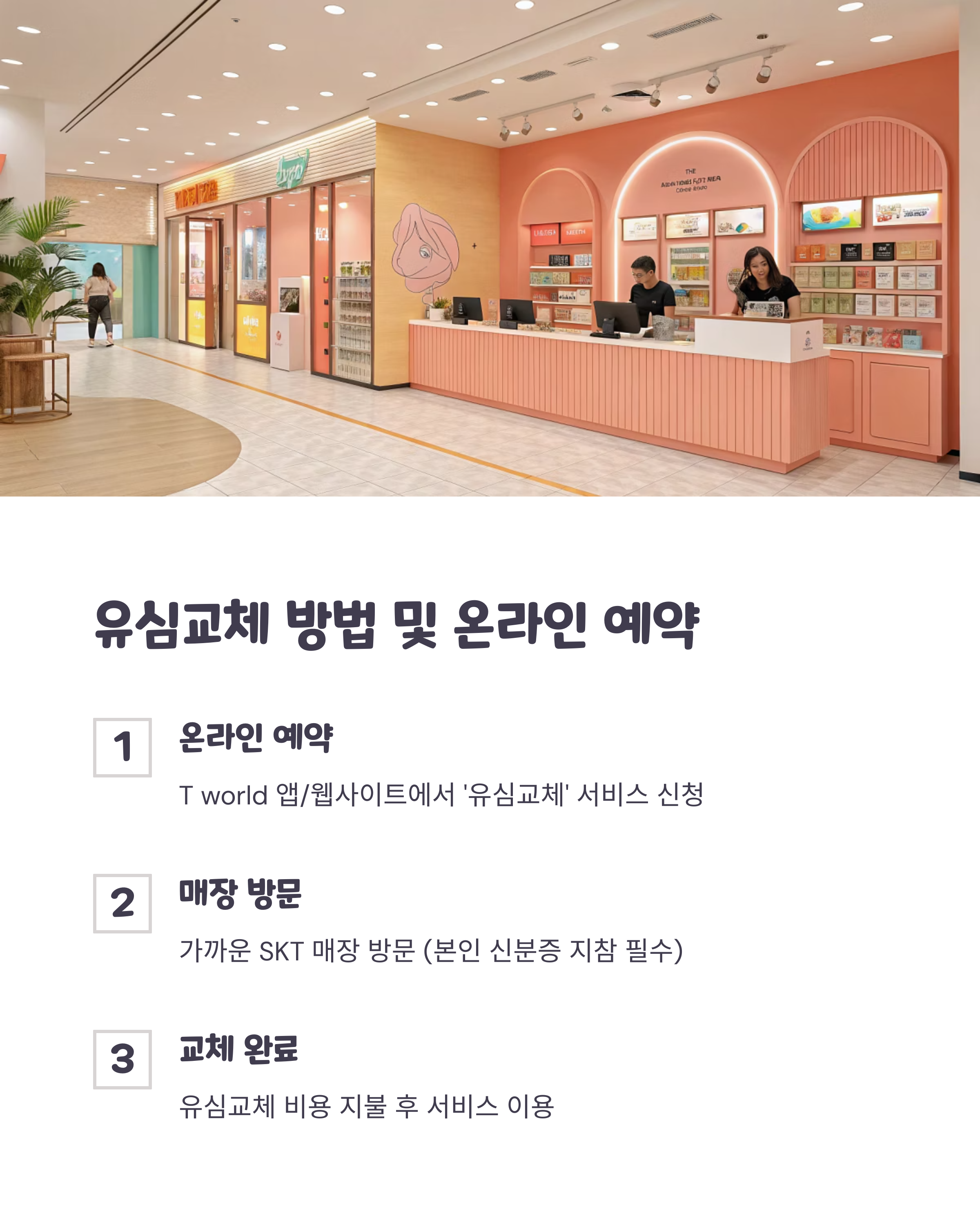 신분증과 기존 휴대폰을 지참한 후 방문하면 간편하게 유심을 새것으로 교체할 수 있습니다.