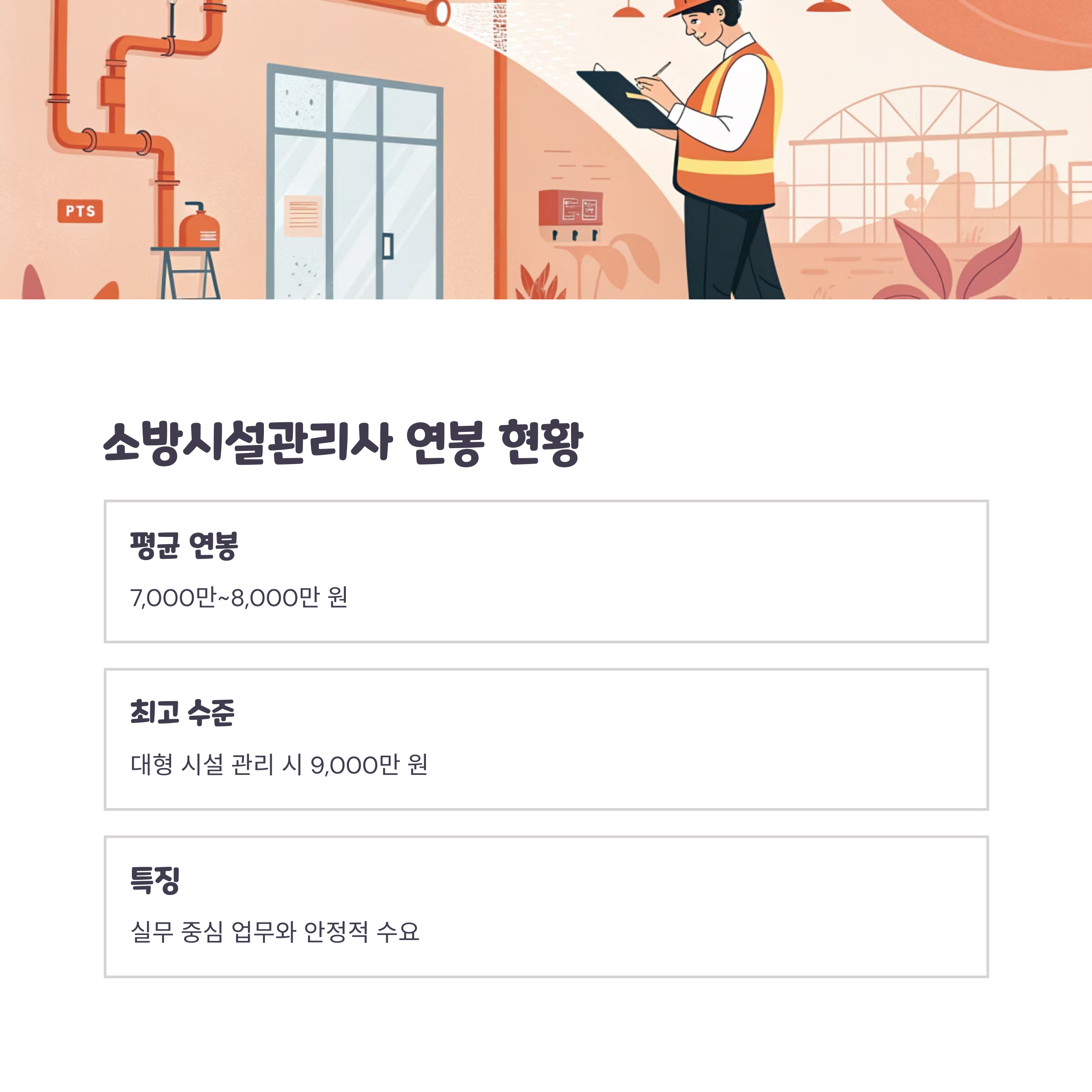 | 소방시설관리사 | 7,000만~8,000만 | 대형 시설 관리 시 9,000만 원까지 |