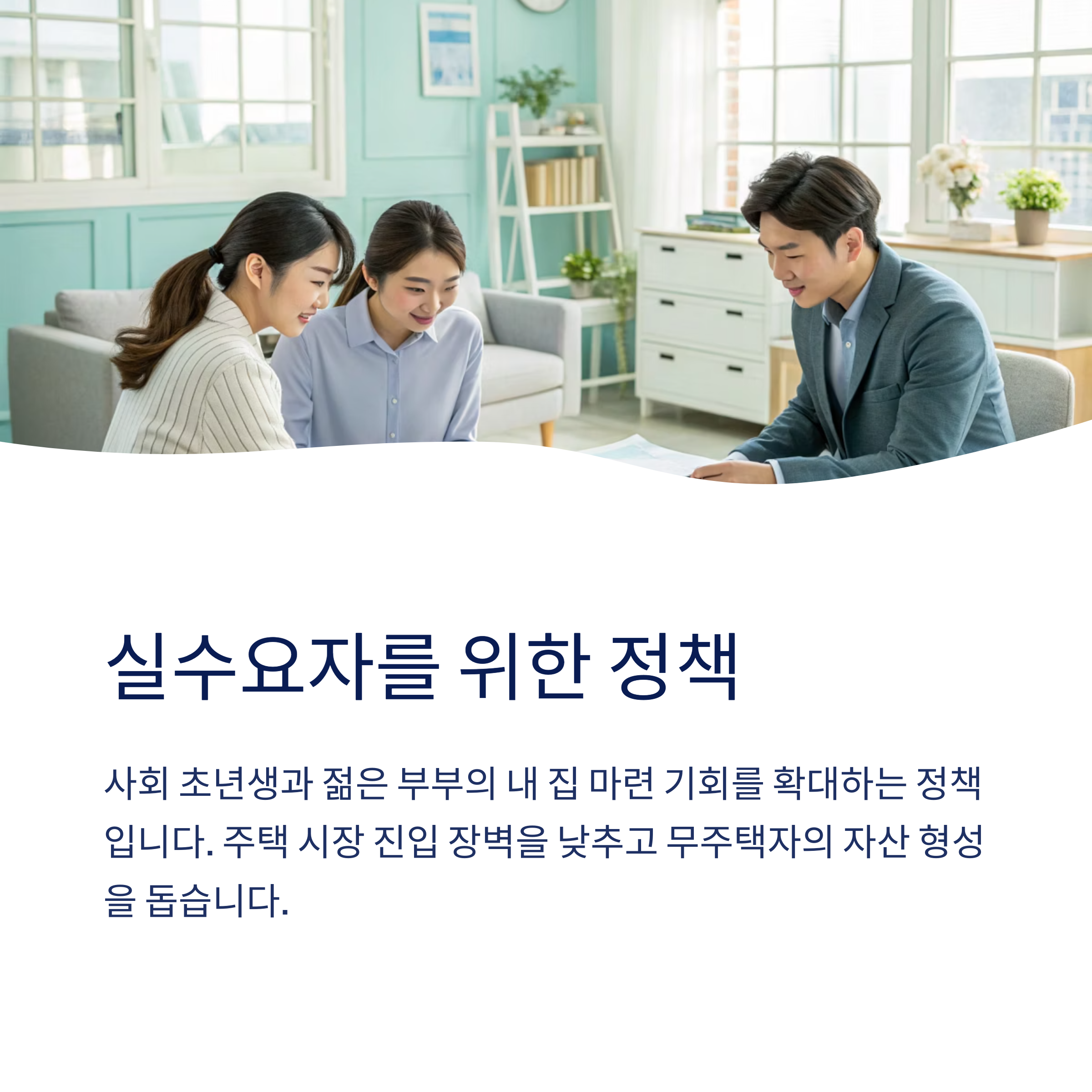 생애 첫 주택 취득세 감면은 실수요자의 주거 안정을 위한 핵심 정책입니다. 자산 형성이 부족한 사회 초년생이나 젊은 부부에게 세금 부담을 줄이는 실질적 혜택이 됩니다. 정부는 이 제도를 통해 내 집 마련의 장벽을 낮추고, 무주택자가 주택 시장에 진입할 수 있는 기회를 늘리고자 합니다.