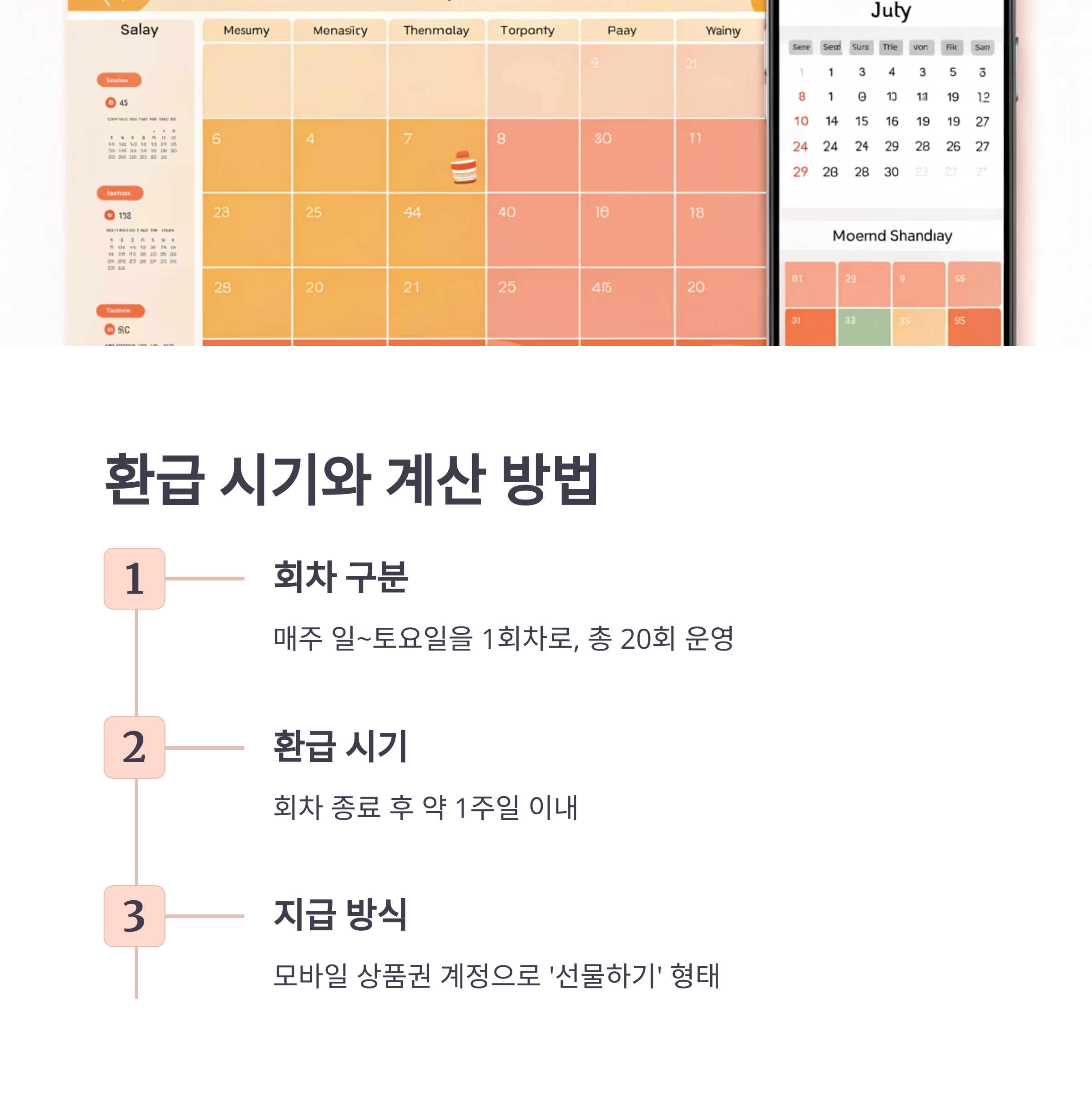 | 2025년 5월 11일 ~ 9월 30일 | 매주 일~토 1회차, 총 20회 | 누적 결제액의 최대 10% |