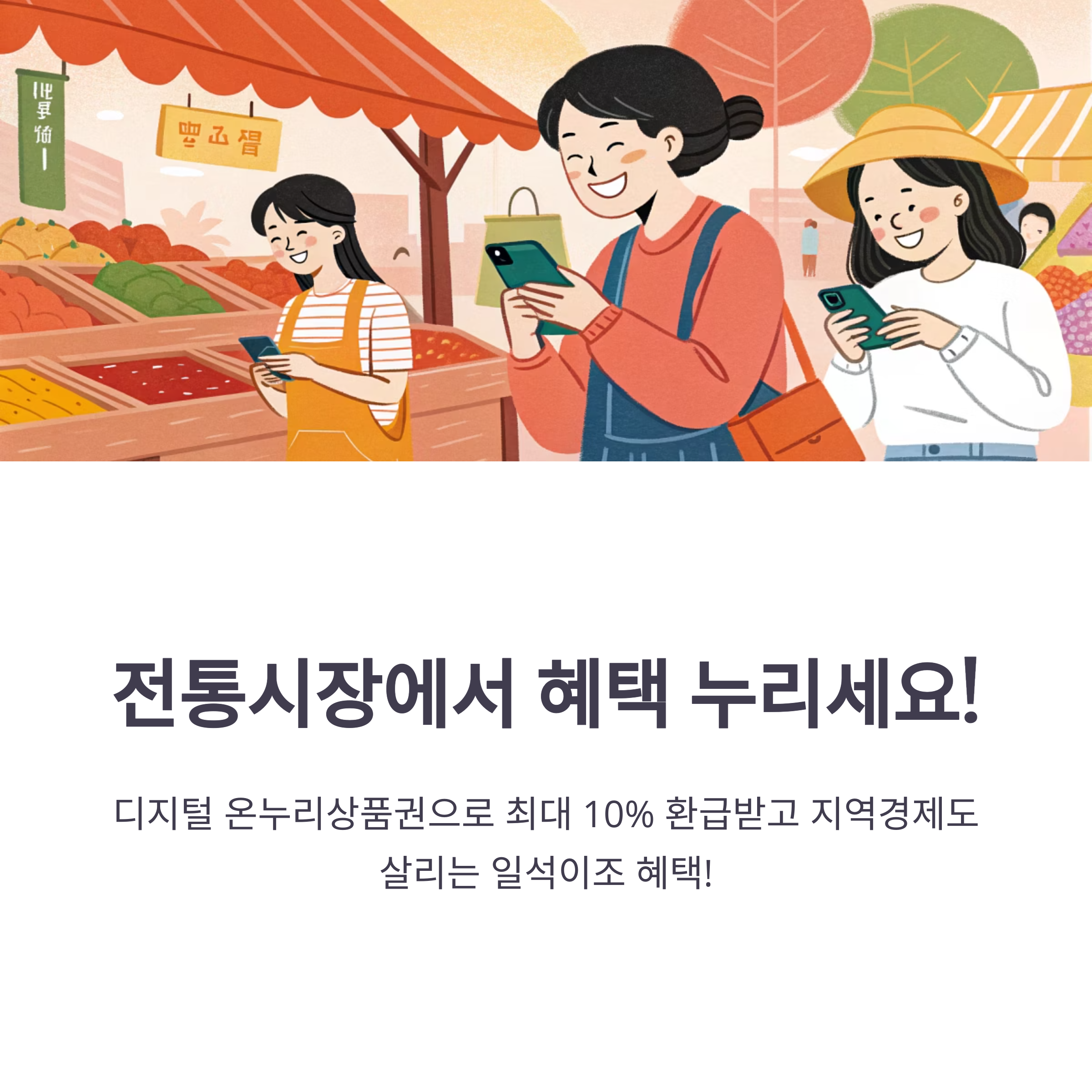 전통시장과 골목상권에서의 소비가 줄어드는 요즘, 디지털 방식의 환급은 더욱 간편하게 혜택을 받을 수 있는 기회입니다. 본 행사는 소비자와 소상공인이 함께 윈윈할 수 있는 구조로 설계되었습니다.
