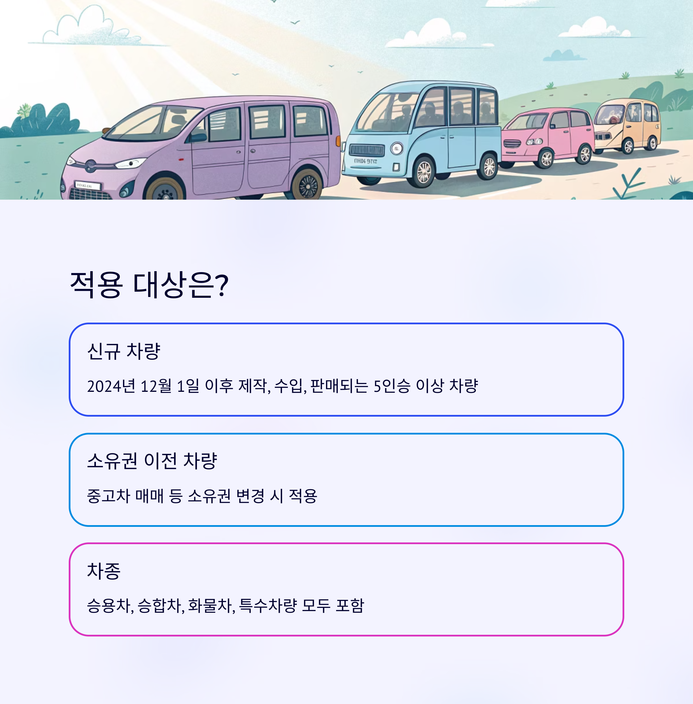 A. 2024년 12월 이후 새로 등록되거나 소유권이 변경된 차량부터 적용됩니다.