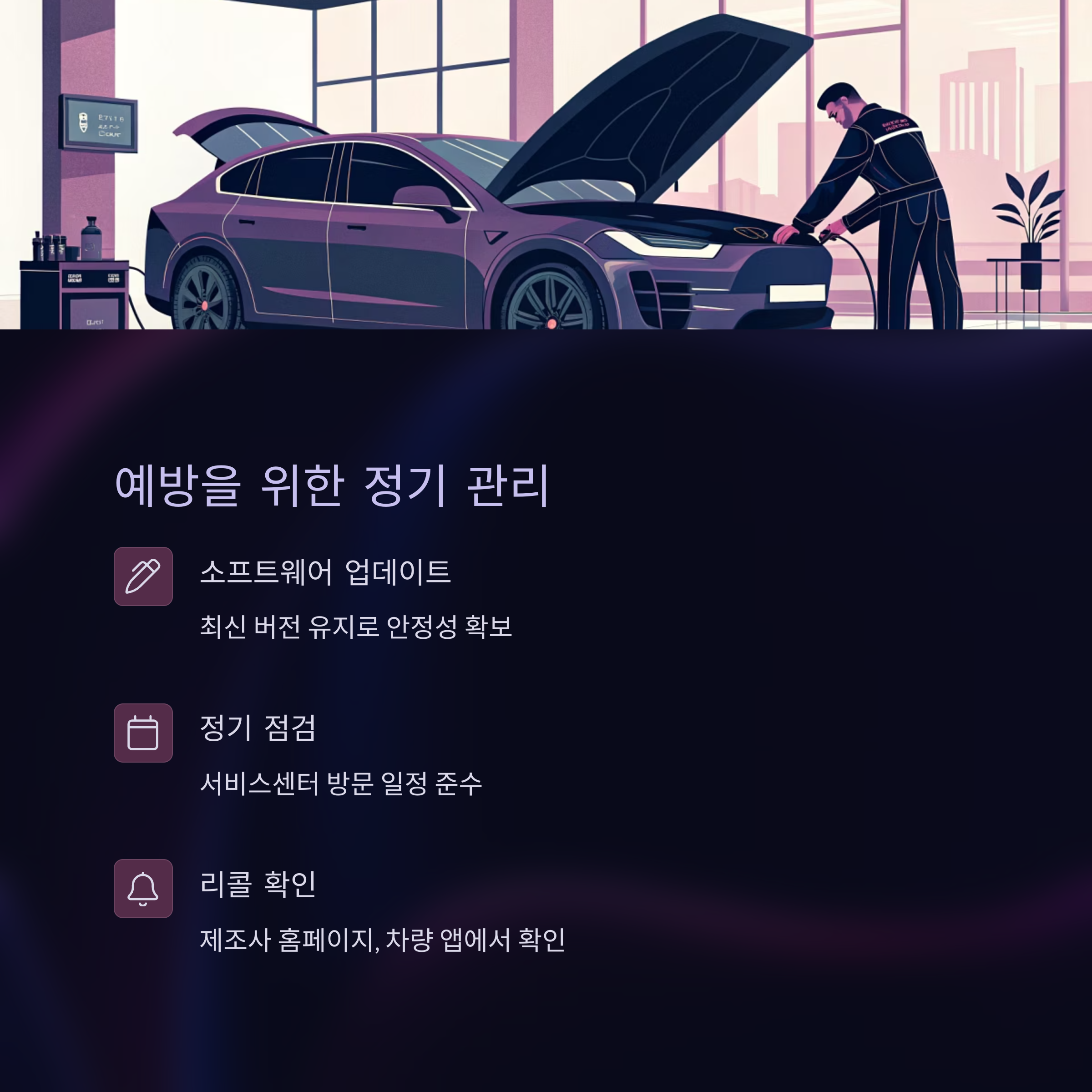 전기차의 오작동을 예방하려면 무엇보다 정기적인 점검이 필수입니다. 제조사에서 제공하는 소프트웨어 업데이트는 차량의 안정성과 기능 개선에 매우 중요합니다. 업데이트를 제때 수행하지 않으면 신기능이 적용되지 않거나, 기존 오류가 계속 남을 수 있습니다. 따라서 차량 앱 또는 대시보드를 통해 정기 점검 알림을 확인하고, 주기적으로 서비스센터를 방문하는 습관이 필요합니다.