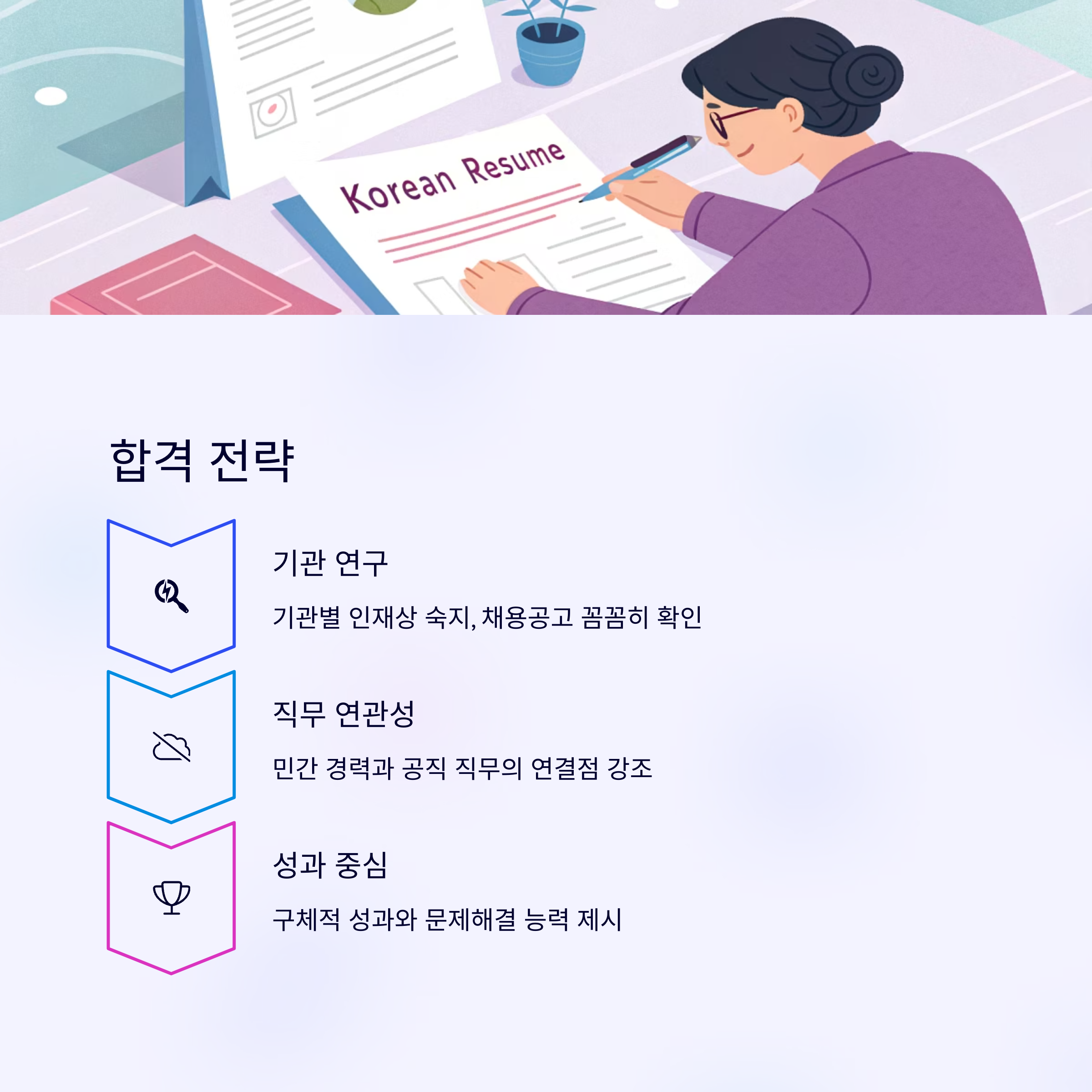 지원자는 해당 직무에서 요구하는 능력과 자신의 경험이 어떻게 일치하는지를 강조해야 합니다. 성과 중심의 기술과 함께 문제 해결 능력을 구체적으로 제시하면 효과적입니다. 또한 각 부처의 채용 공고를 꼼꼼히 확인하여 적합한 분야에 지원하는 것이 중요합니다.