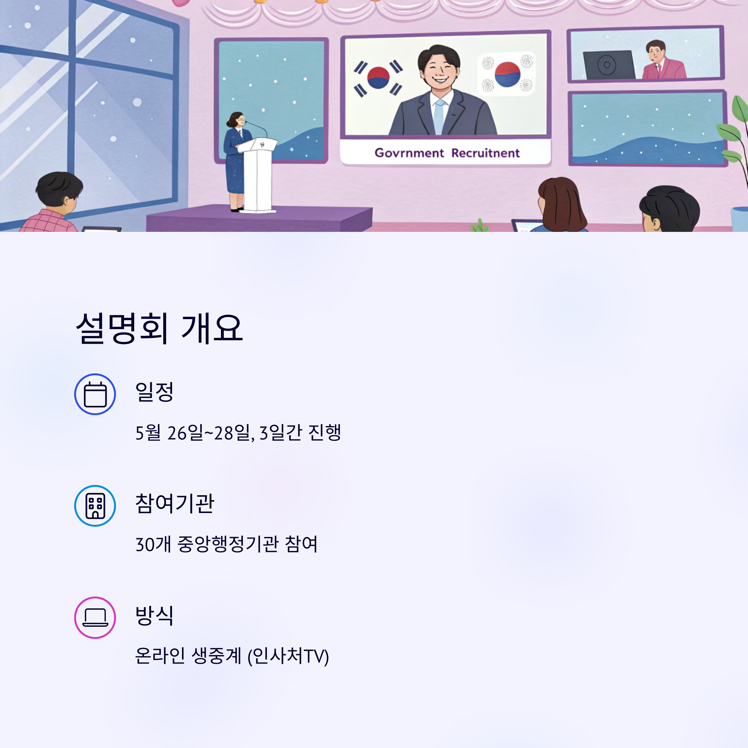 | 5월 26~28일 | 온라인 채용설명회 | 인사처TV 생중계 |