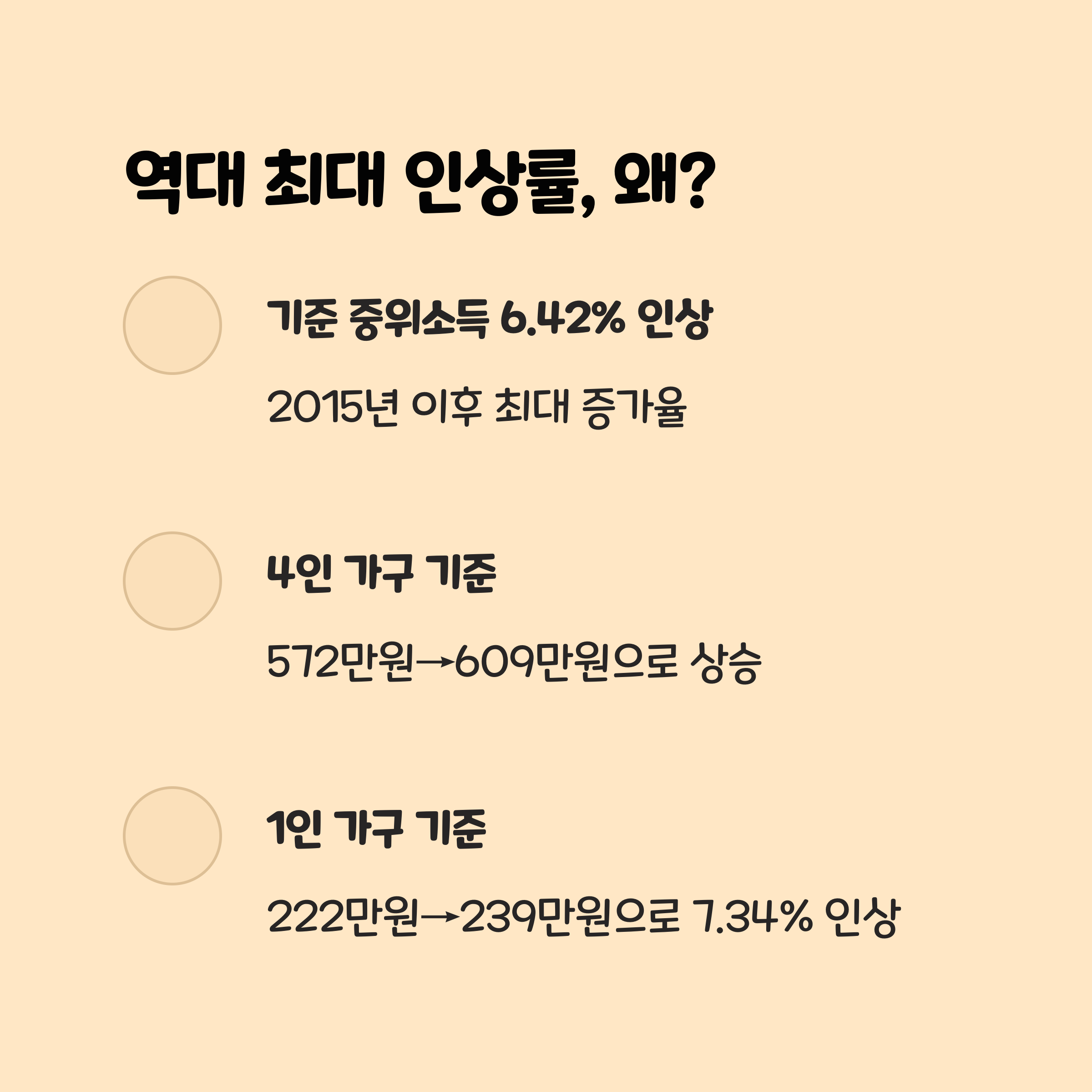 - 기준 중위소득 역대 최대 인상(6.42%)