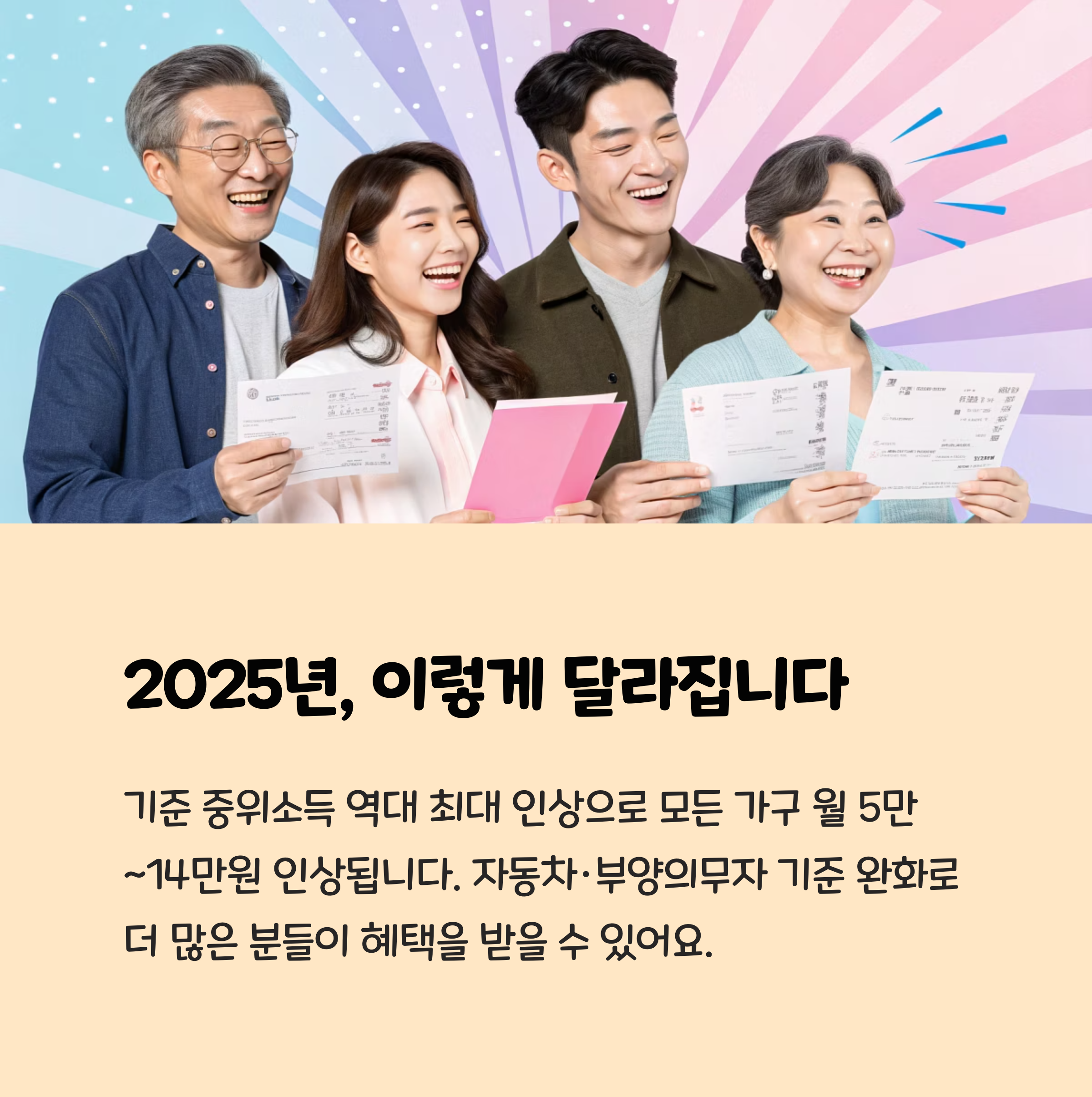 2025년에는 생계급여 선정기준이 대폭 완화됩니다.