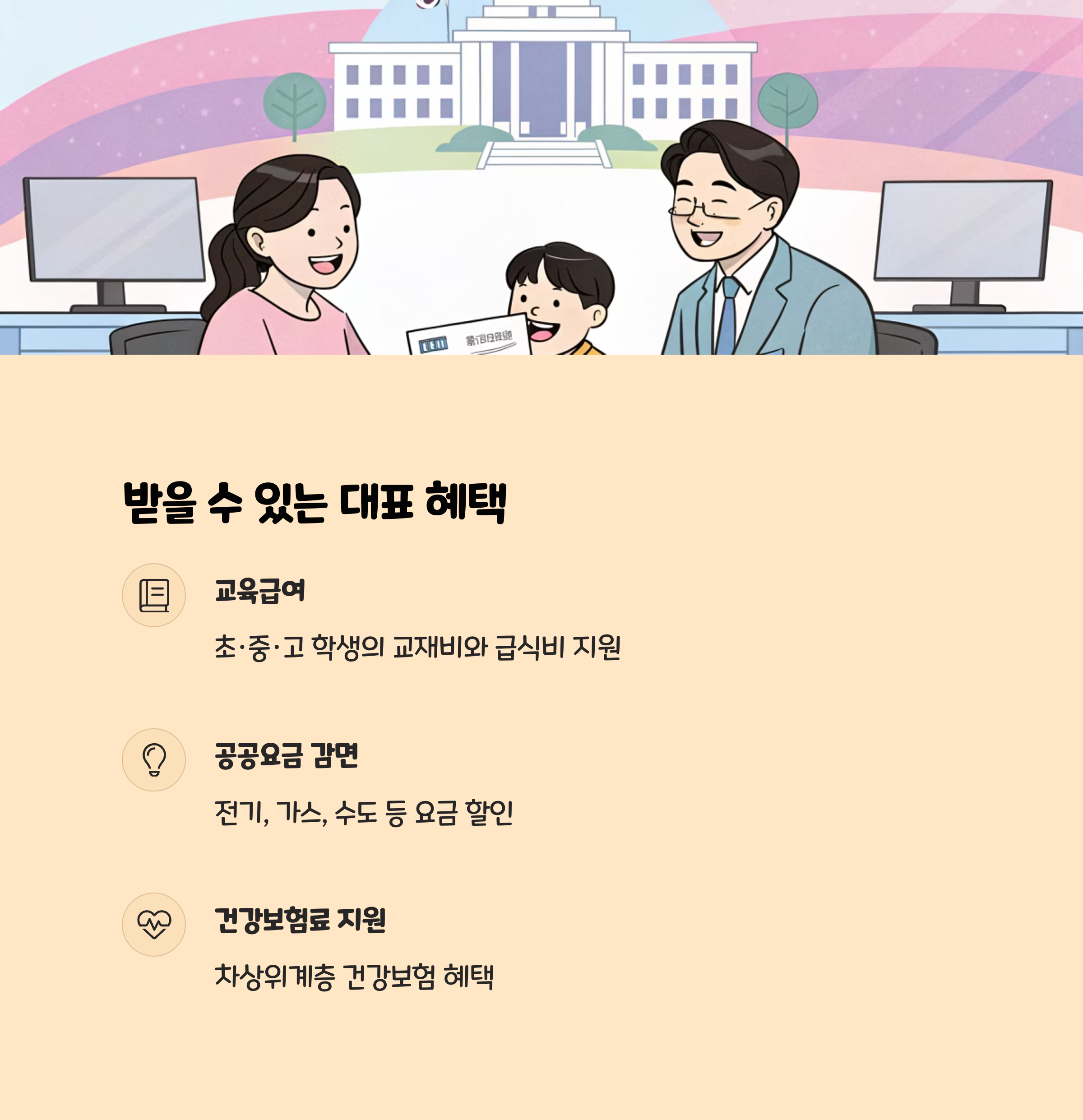 또한 공공요금 감면·건강보험료 지원 등 차상위계층 지원 혜택도 포함됩니다.