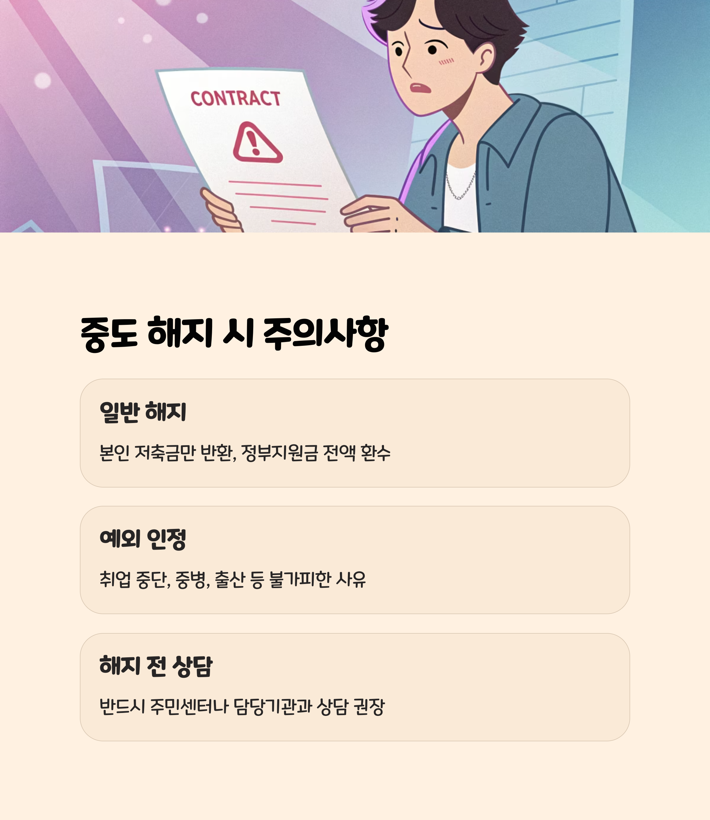 중도 해지를 하게 되면 본인이 낸 저축금만 반환되고