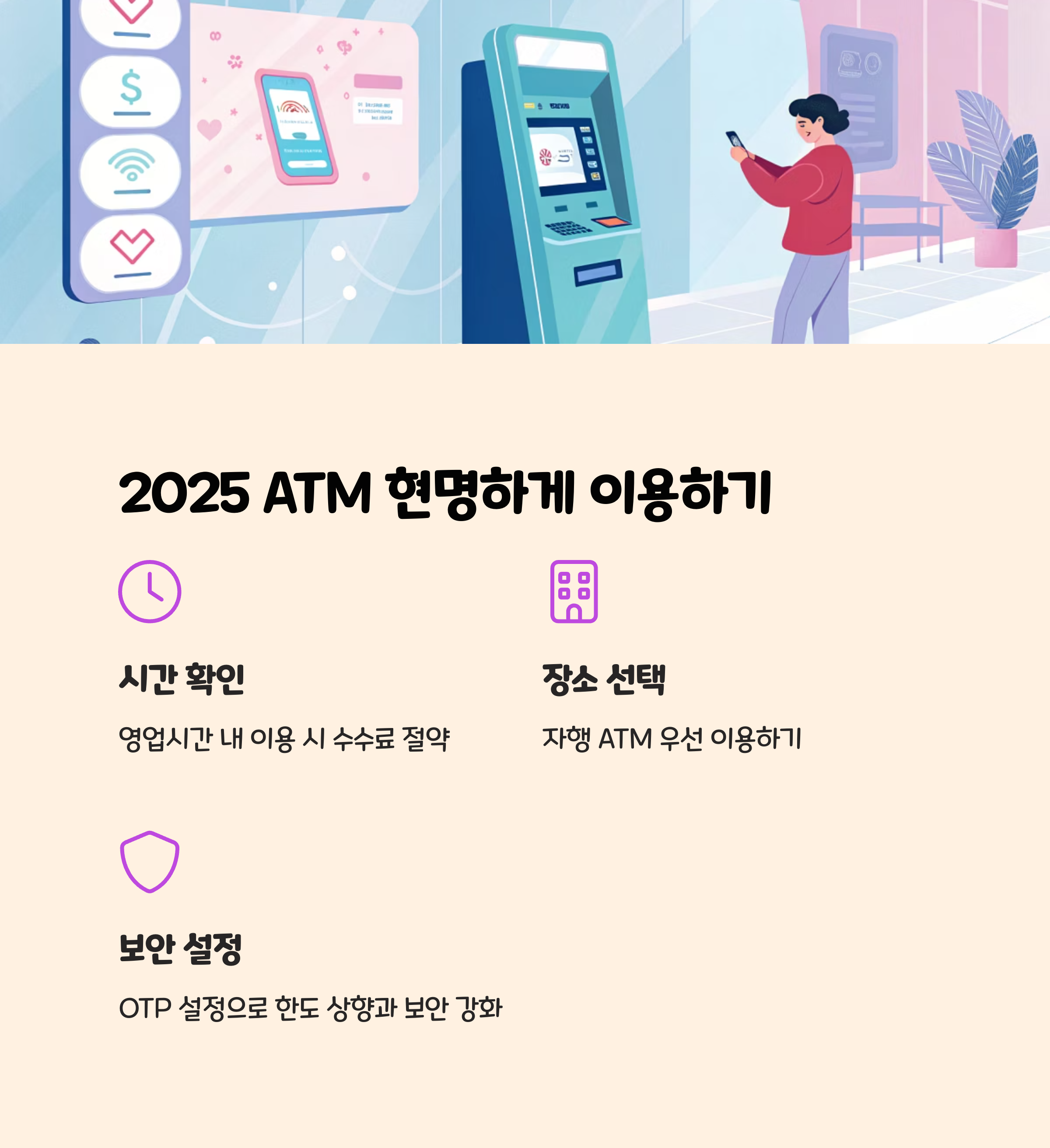 시중은행을 이용할 경우, 영업시간 내 자행 ATM을 활용하여 수수료를 줄이는 것이 중요합니다.