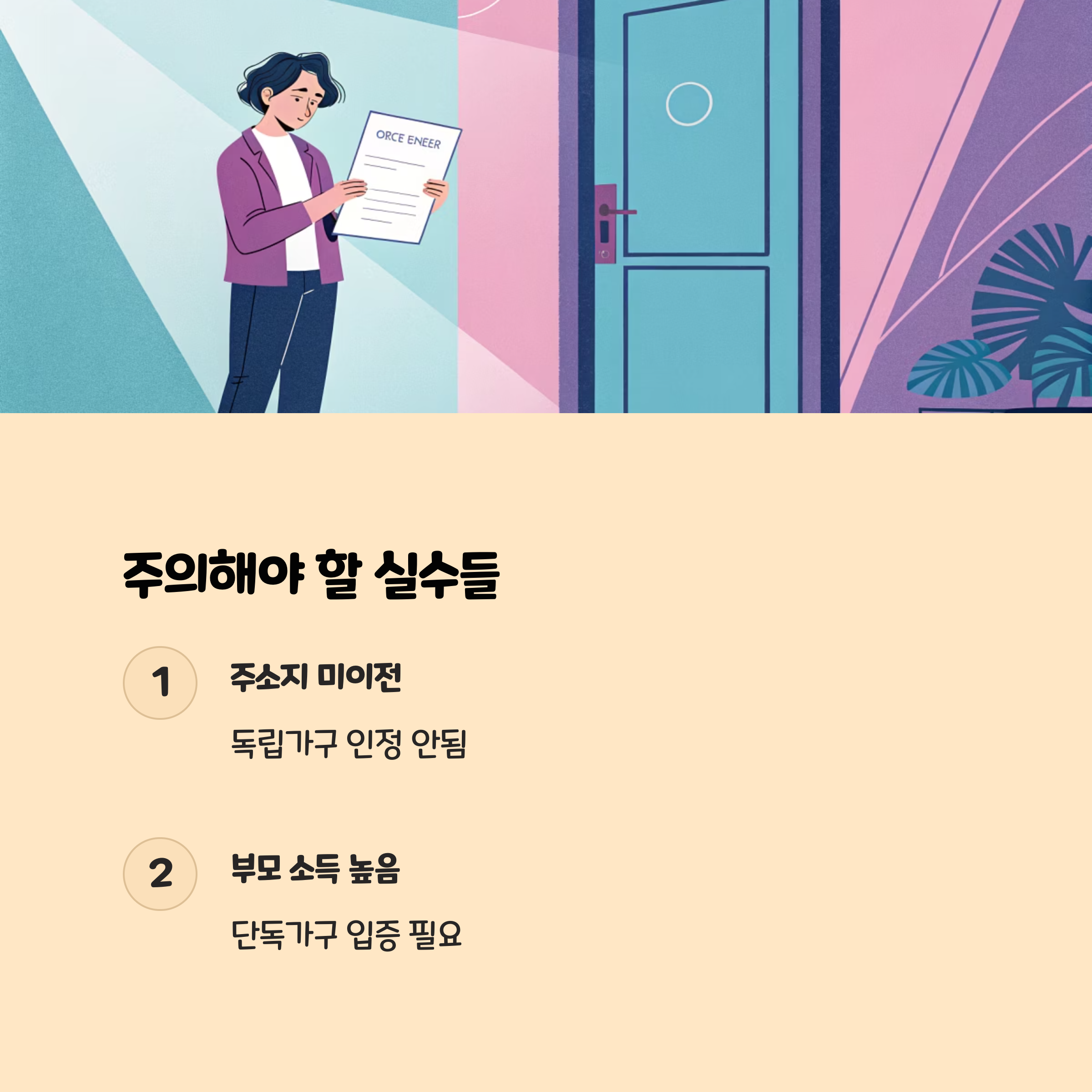 독립가구로 인정되지 않아 탈락하는 사례가 많습니다.