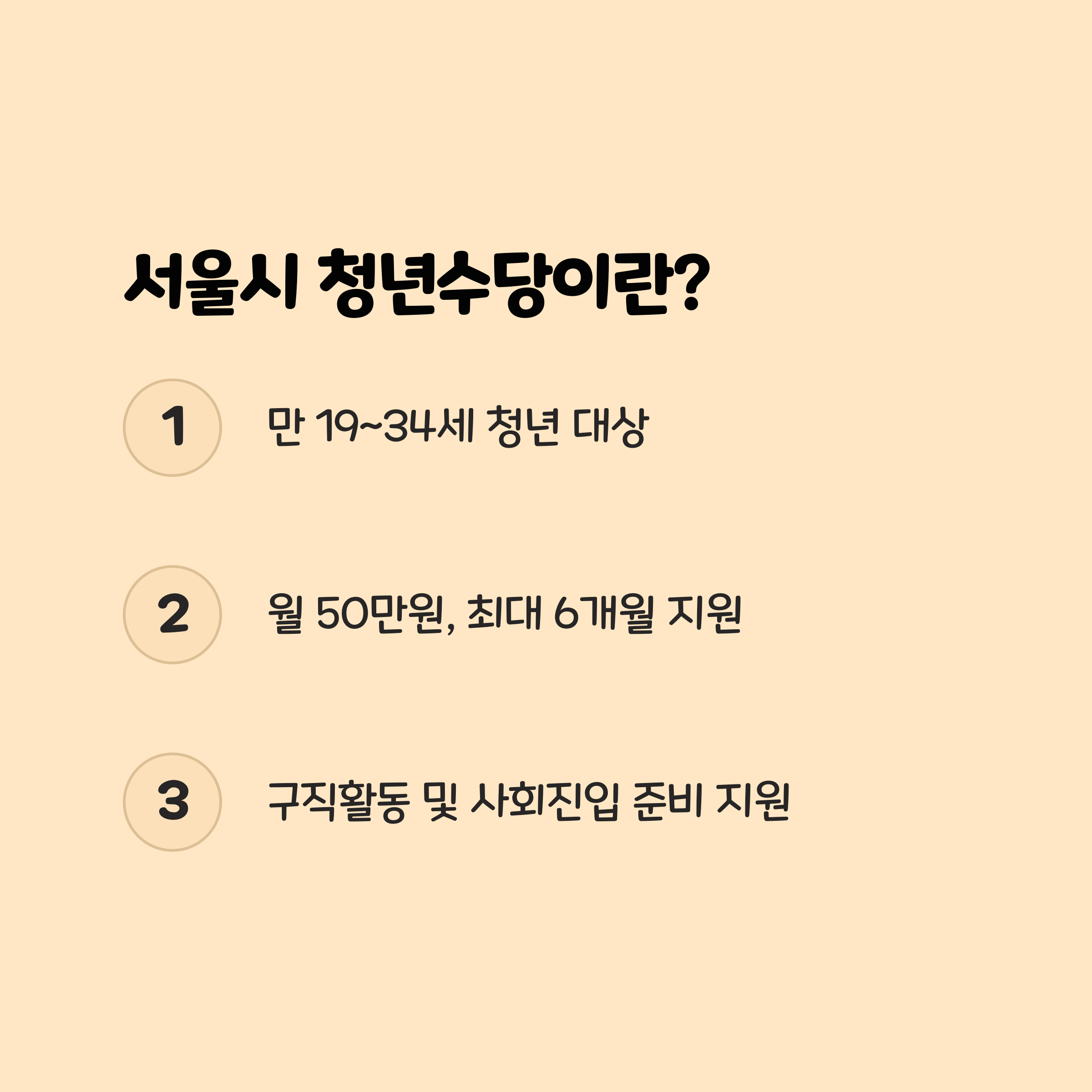 서울시 청년수당은 만 19세~34세의 청년에게 최대 6개월 동안 월 50만 원, 총 300만 원을 지원해주는 사업입니다. 구직활동이나 사회진입을 준비하는 청년들에게 실질적인 도움을 주기 위한 정책으로, 매년 상·하반기 공고에 맞춰 신청할 수 있습니다. 이 글에서는 청년수당의 지원 자격, 신청 방법, 지급 방식까지 자세히 정리해드립니다.