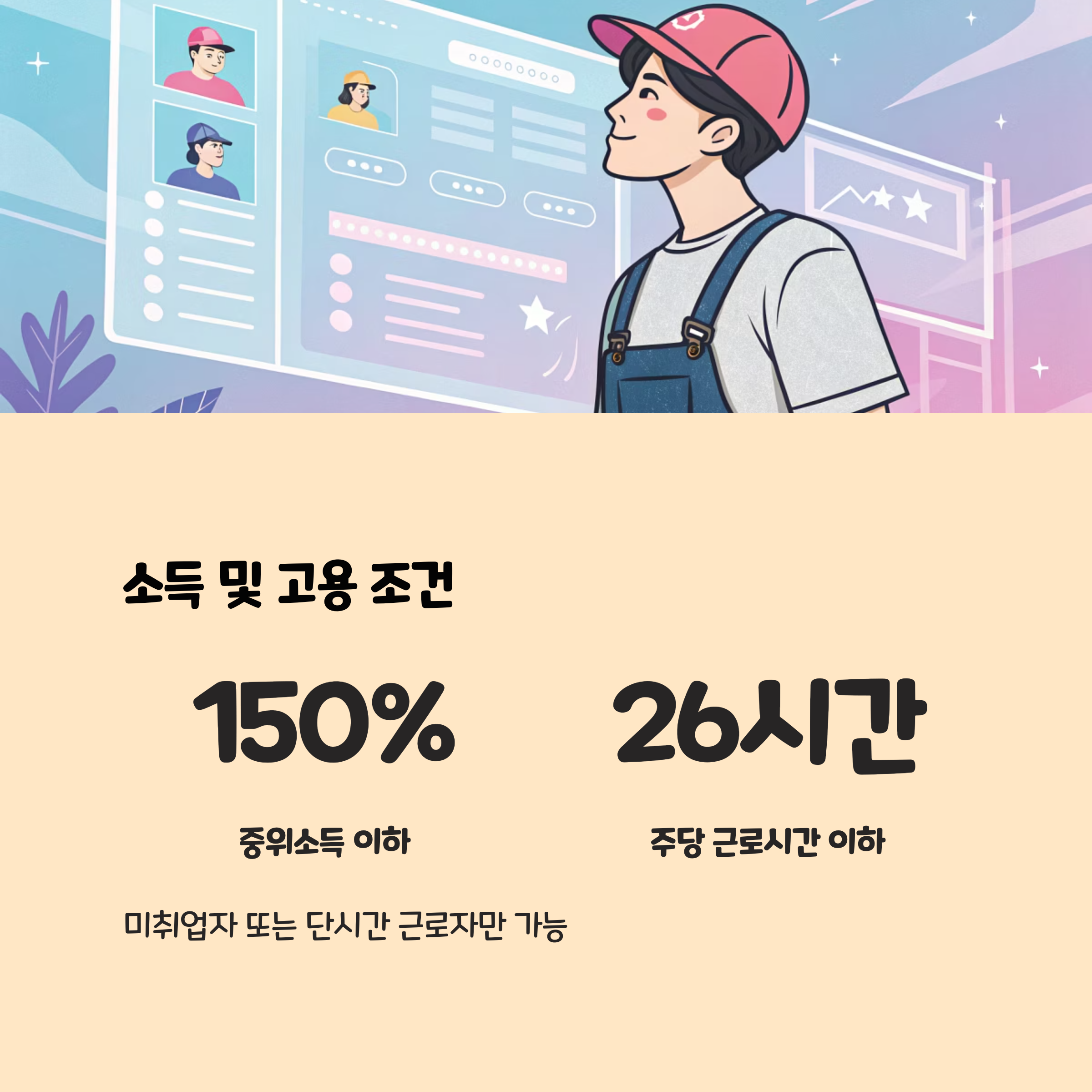 고용보험 기준 상 ‘미취업’ 또는 ‘주 26시간 이하 단시간 근로’ 상태여야 합니다.