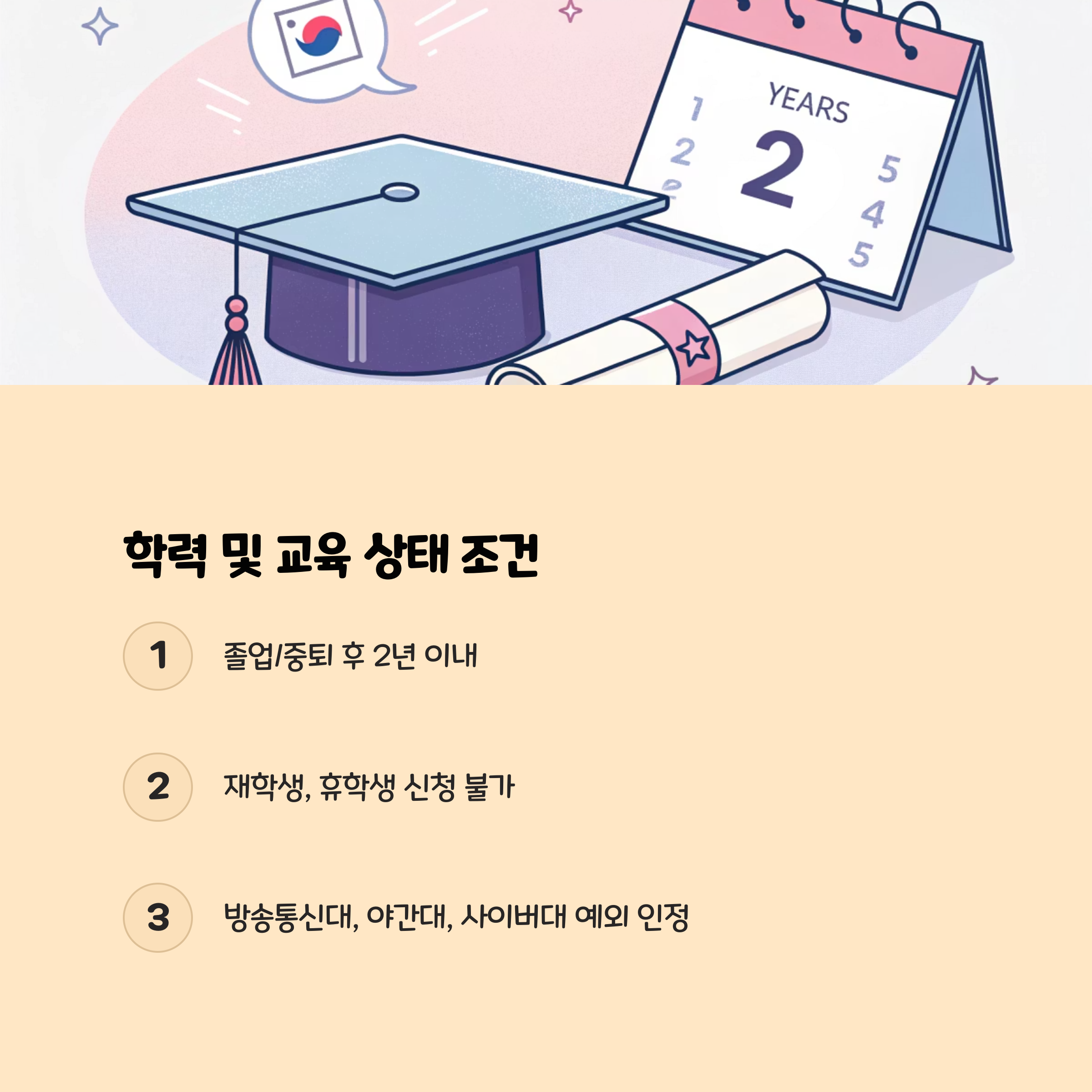 대학 재학생, 휴학생, 졸업 후 2년 이상 경과자는 신청할 수 없습니다.