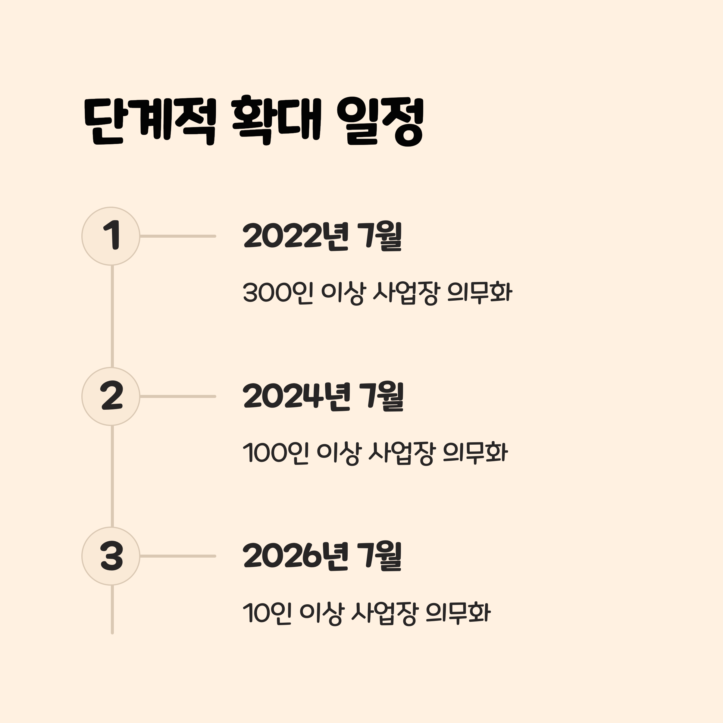 | 2022년 7월 | 300인 이상 | 이미 시행 중 |