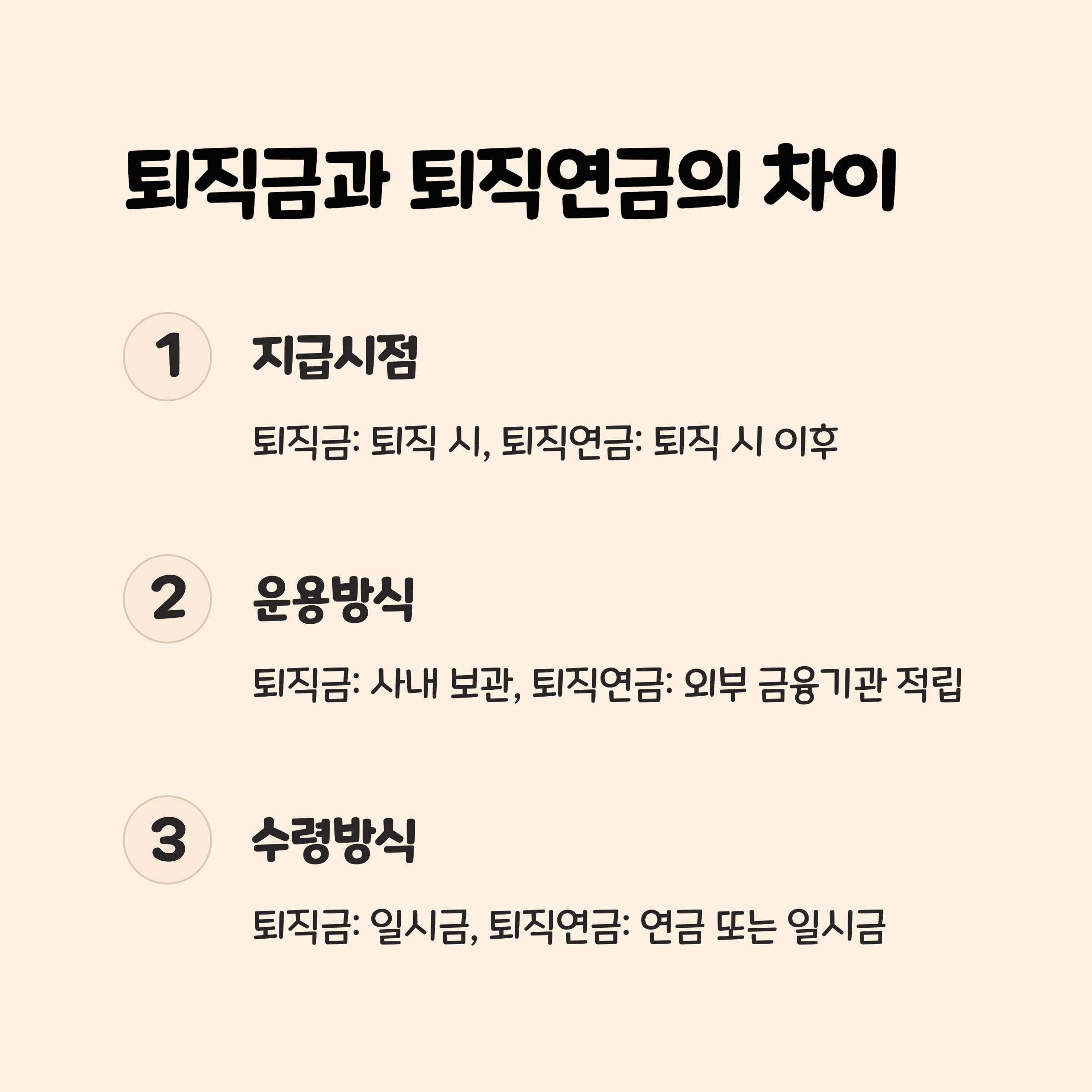 즉, 지급 방식과 운용 구조가 다릅니다. 퇴직연금은 장기적인 노후소득 보장이라는