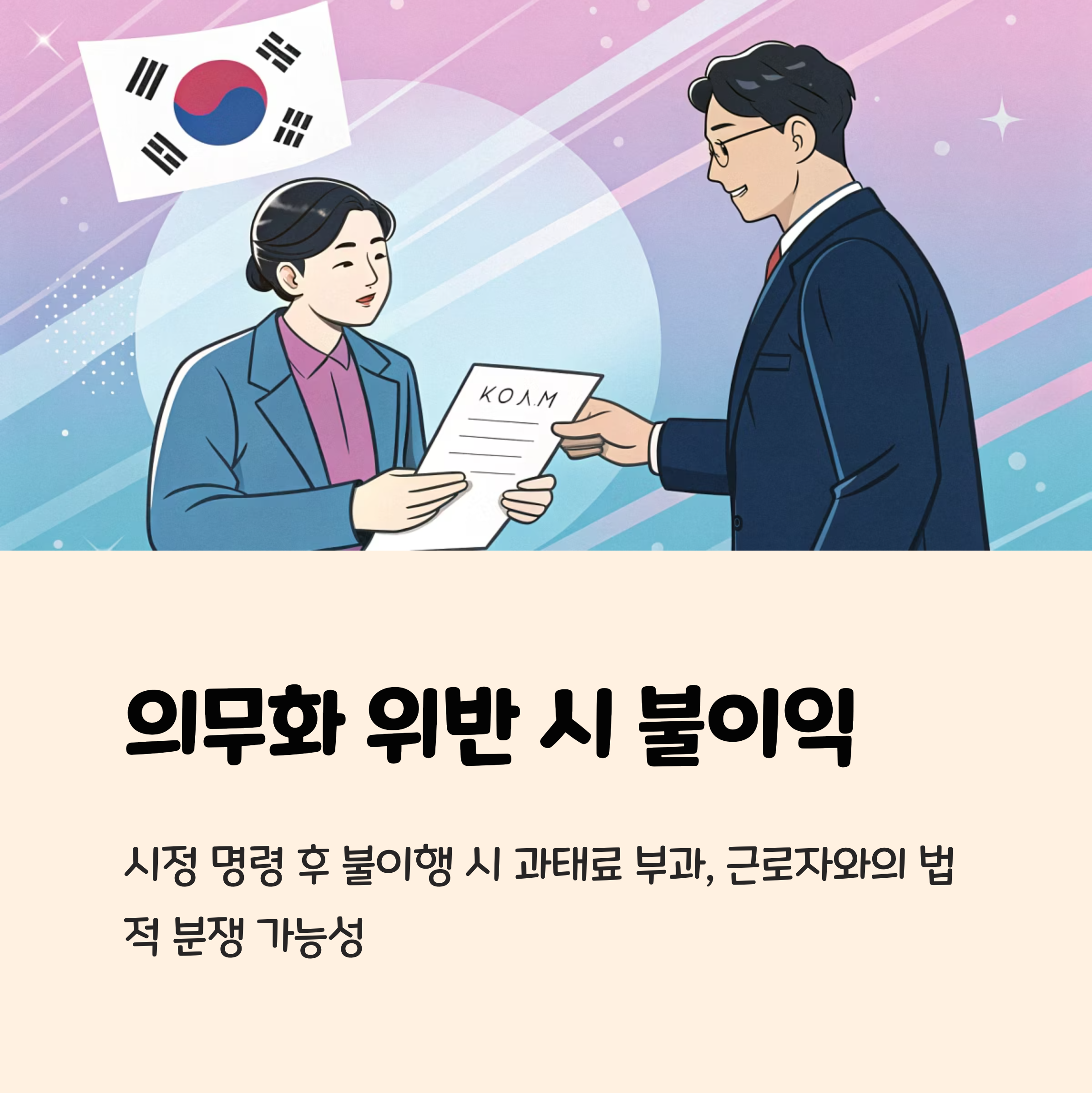 사업주는 고용노동부의 시정 명령을 받게 되며, 이를 따르지 않으면