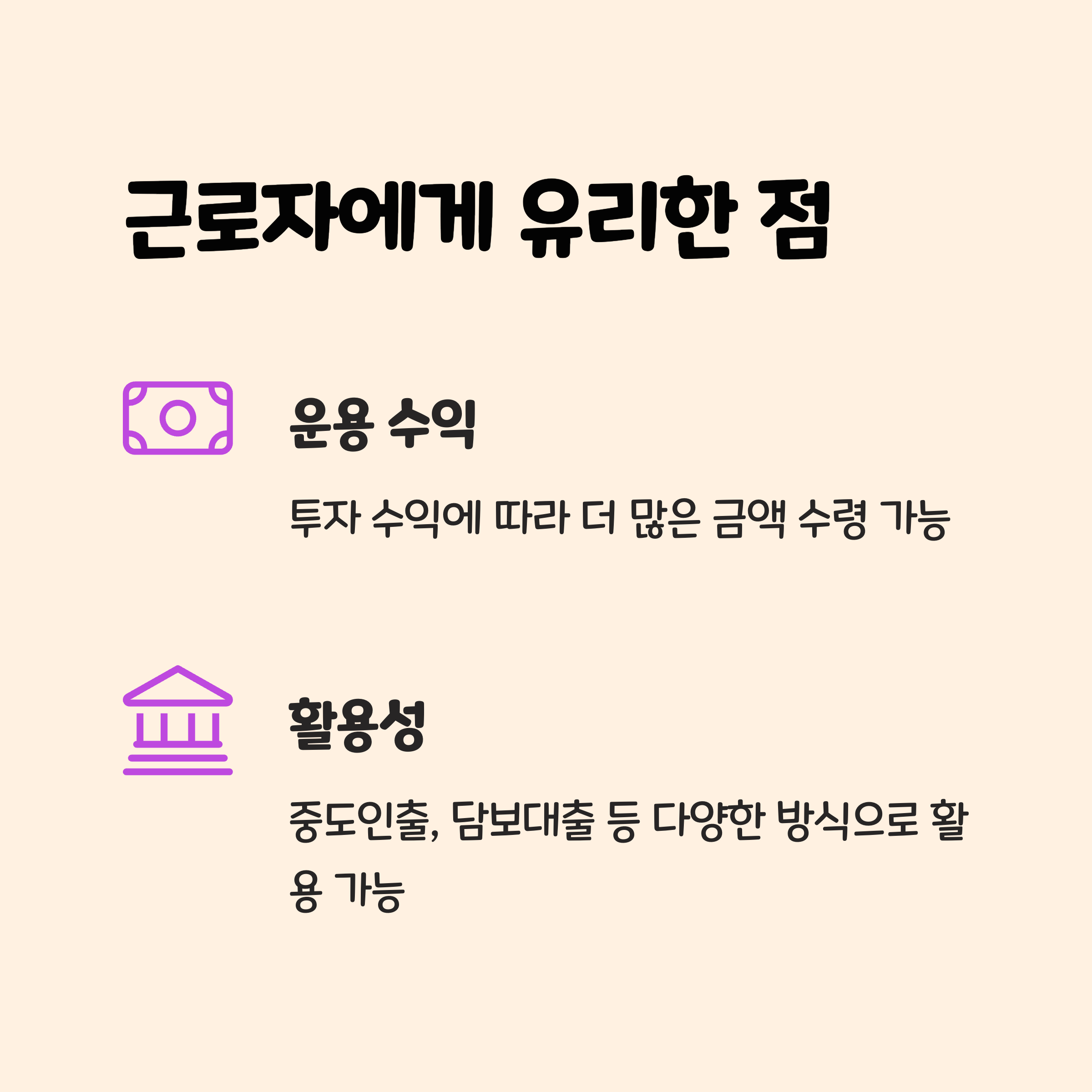 또한, 중도인출이나 담보대출 등 다양한 방식으로 활용이 가능해