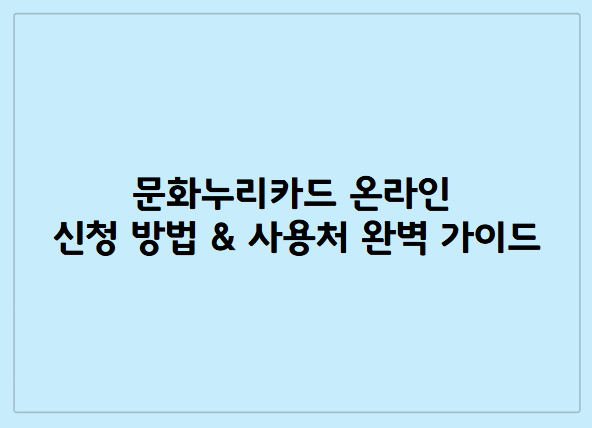 이번 글에서는 문화누리카드의 온라인 신청 방법과 사용처에 대해 자세히 안내해 드리겠습니다.