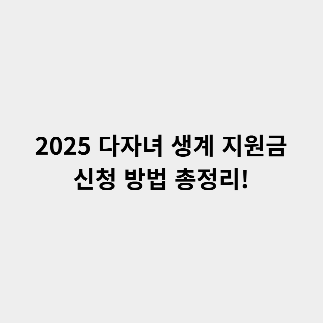 2025 다자녀 생계 지원금 신청 방법 총정리! 지원 대상·금액·꿀팁까지 놓치지 마세요!